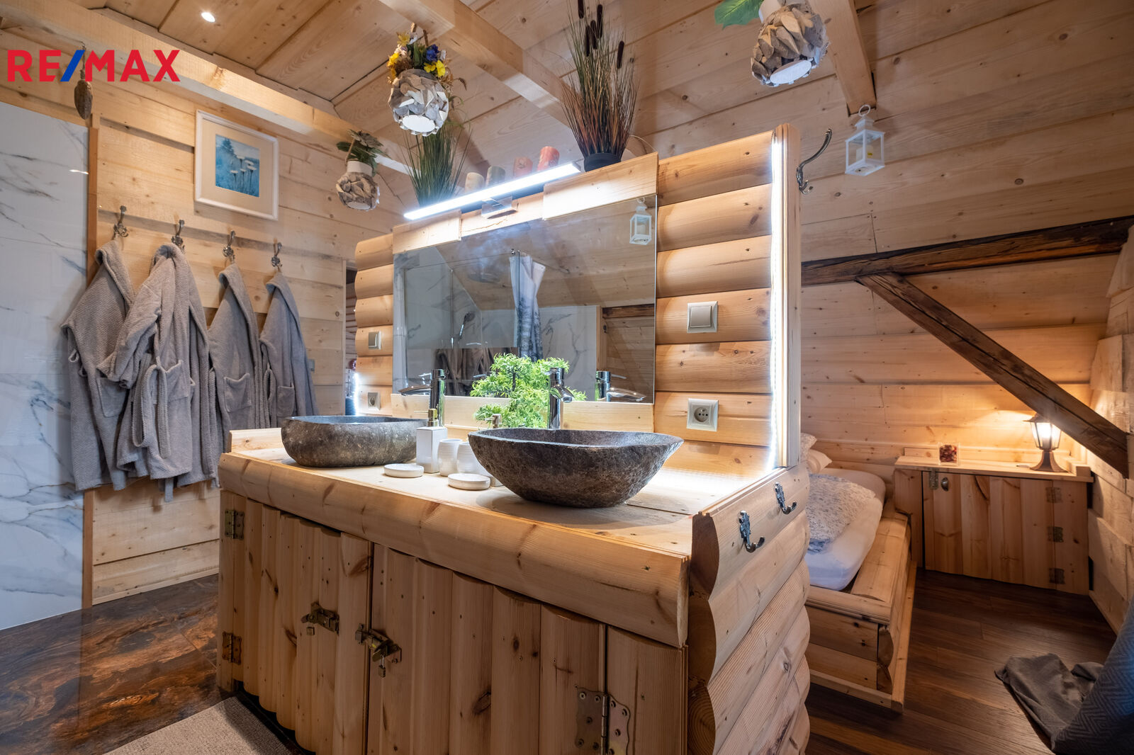 Tato nemovitost Vám nabízí dva bazény, tři vířivky, které poskytují dokonalý odpočinek, v jakém ročním období. Součástí je také vlastní wellness se saunou, kde můžete načerpat energii v soukromí.