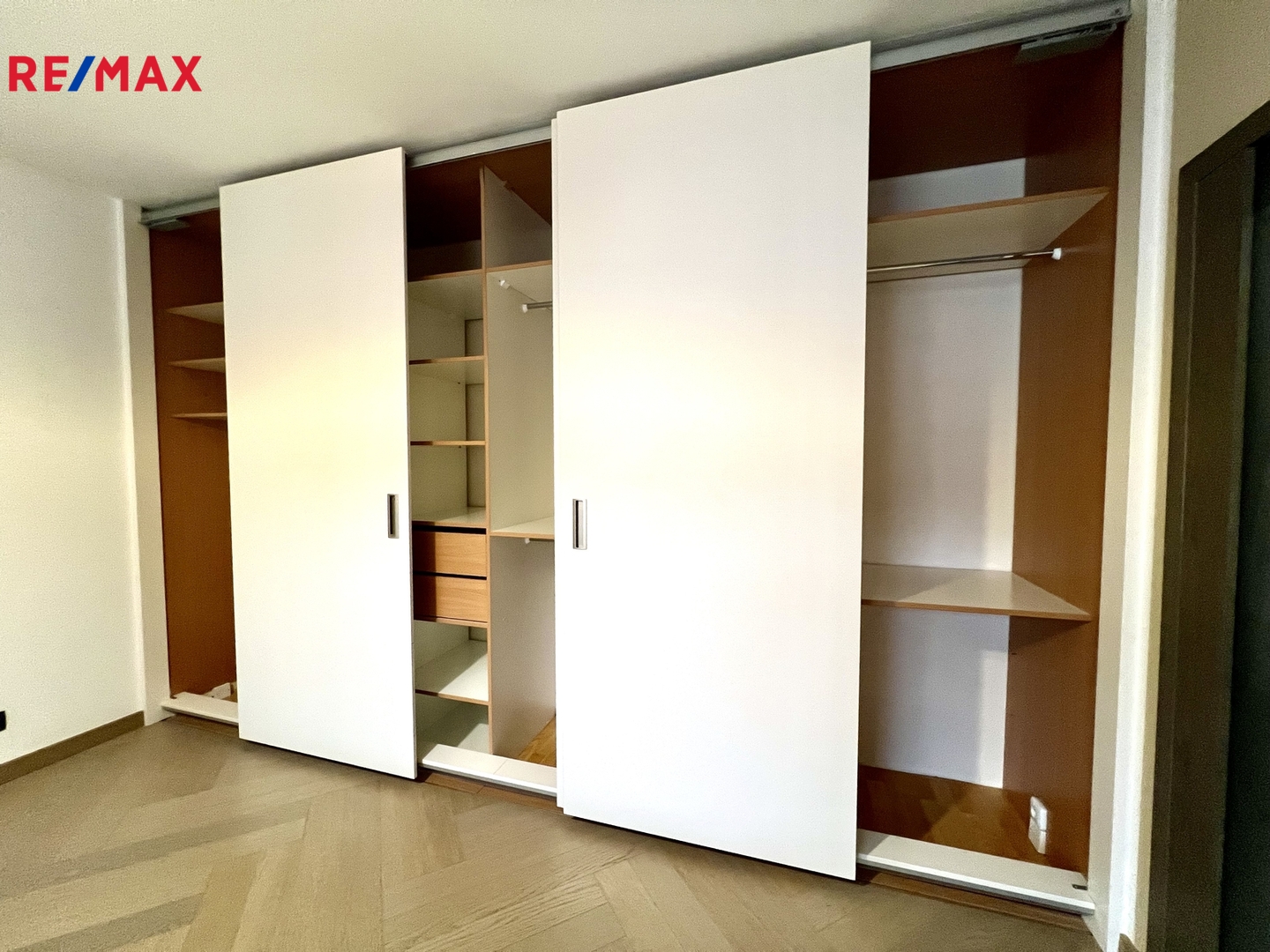 - úložné prostory tvoří dvě velké vestavěné skříně s posuvnými dveřmi,