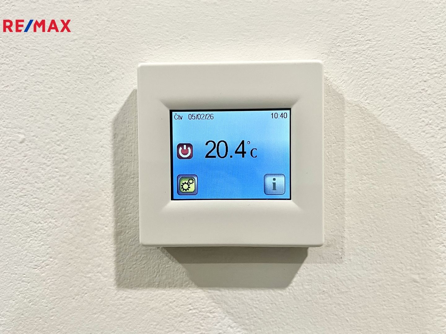 - elektroinstalace s navýšením počtu zásuvek, elektrické podlahové vytápění v místech dlažby se třemi termostaty,