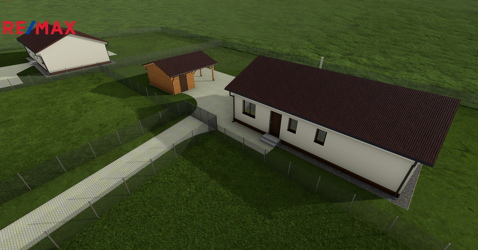 Rodinný dům je navržen jako samostatně stojící, jednopodlažní objekt s neobytným podkrovím. Stavba má sedlovou střechu a je založena na betonových základových pásech se ztraceným bedněním a vyztuženou základovou deskou. Obvodové zdivo přízemí je z cihel Porotherm, střešní krytina bude tašková. Okapový systém je z lakovaného pozinku v barvě krytiny. Dveře a okna budou plastové s izolačním trojsklem. Součástí nemovitosti je také samostatně stojící kryté parkovací stání s uzavřeným skladem. Jedná se o jednopodlažní stavbu se sedlovou střechou, jejíž krytina odpovídá střešní krytině na rodinném domě. K domu také přiléhá zpevněná plocha – závětří a terasa ze zámkové dlažby. Interiér domu bude moderně zařízen. V kuchyni bude moderní kuchyňská linka s vestavnými spotřebiči. V koupelně a na toaletě bude moderní sanita, obklady a dlažba. Se stavební firmou je možnost individuální domluvy při výběru interiéru do celého domu. Na pozemku je již zahájena úprava terénu a příprava na výstavbu.
