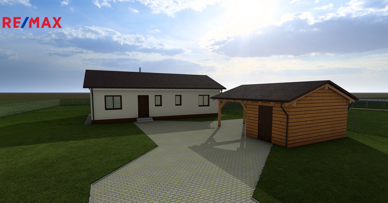 Rodinný dům je navržen jako samostatně stojící, jednopodlažní objekt s neobytným podkrovím. Stavba má sedlovou střechu a je založena na betonových základových pásech se ztraceným bedněním a vyztuženou základovou deskou. Obvodové zdivo přízemí je z cihel Porotherm, střešní krytina bude tašková. Okapový systém je z lakovaného pozinku v barvě krytiny. Dveře a okna budou plastové s izolačním trojsklem. Součástí nemovitosti je také samostatně stojící kryté parkovací stání s uzavřeným skladem. Jedná se o jednopodlažní stavbu se sedlovou střechou, jejíž krytina odpovídá střešní krytině na rodinném domě. K domu také přiléhá zpevněná plocha – závětří a terasa ze zámkové dlažby. Interiér domu bude moderně zařízen. V kuchyni bude moderní kuchyňská linka s vestavnými spotřebiči. V koupelně a na toaletě bude moderní sanita, obklady a dlažba. Se stavební firmou je možnost individuální domluvy při výběru interiéru do celého domu. Na pozemku je již zahájena úprava terénu a příprava na výstavbu.
