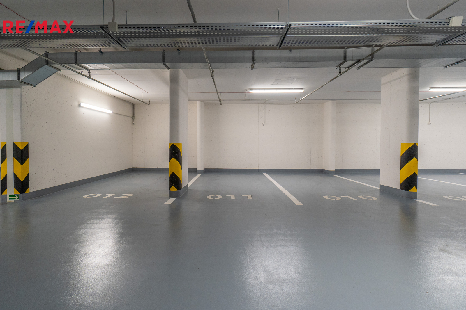 Parkování a úložné prostory: V ceně nájmu je samostatné garážové stání. K bytu náleží sklepní kóje 2 m².