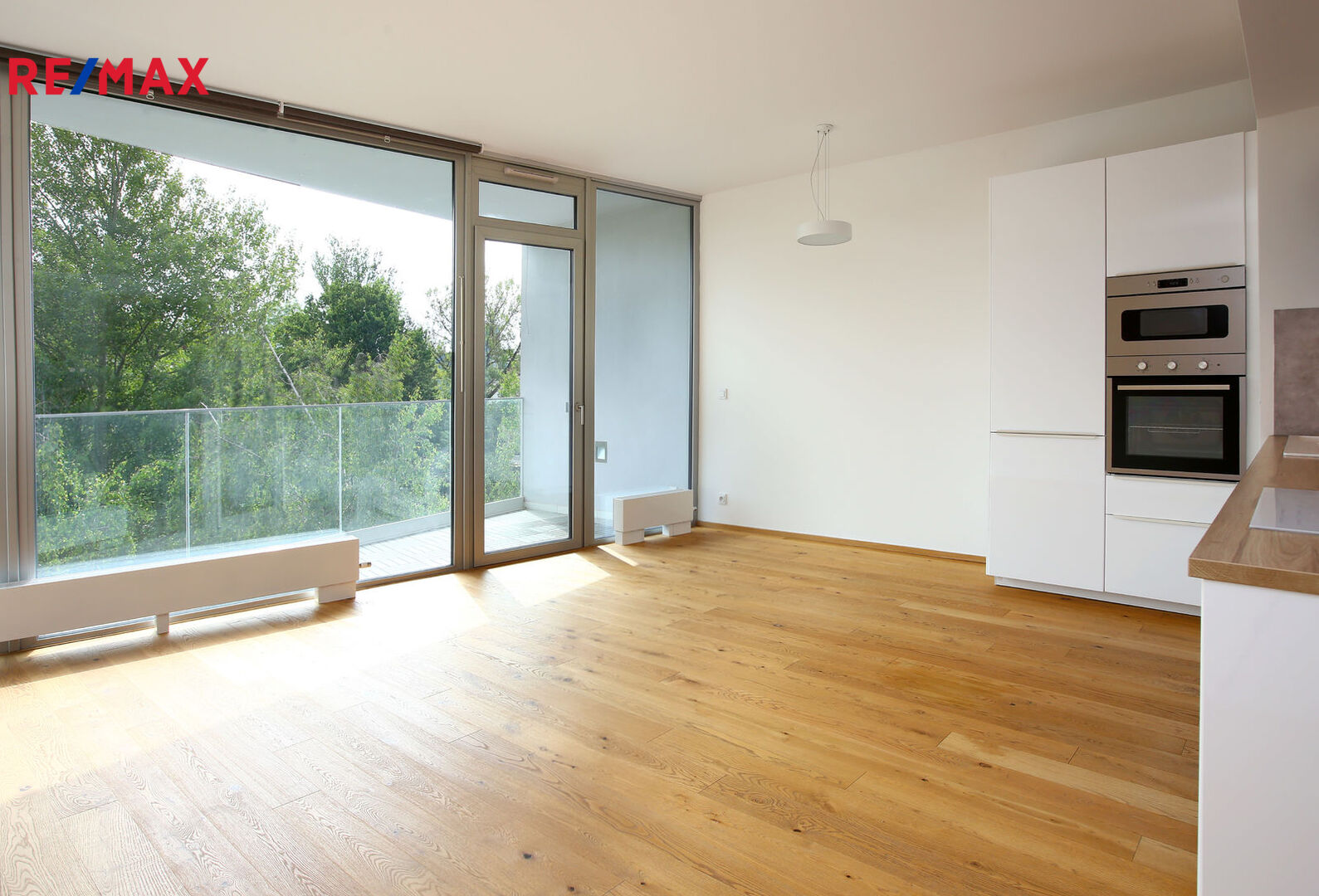 V bytě jsou nádherné dřevěné dubové podlahy, obývací část je orientována na východ směrem k Berounce s výhledem do korun stromů. Byt je vybaven kuchyňskou linkou s vestavnými spotřebiči (myčka, trouba, varná deska, mikrovlnná trouba, lednice), v předsíni jsou prostorné skříně. Dále se v bytě nachází koupelna s WC a sprchovým koutem, další samostatné WC a praktická komora.