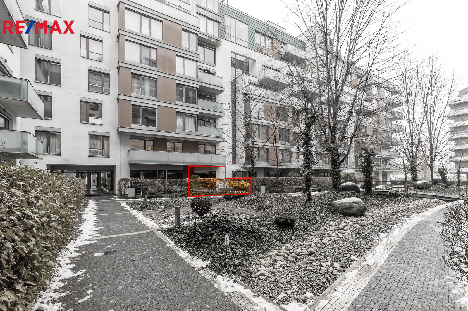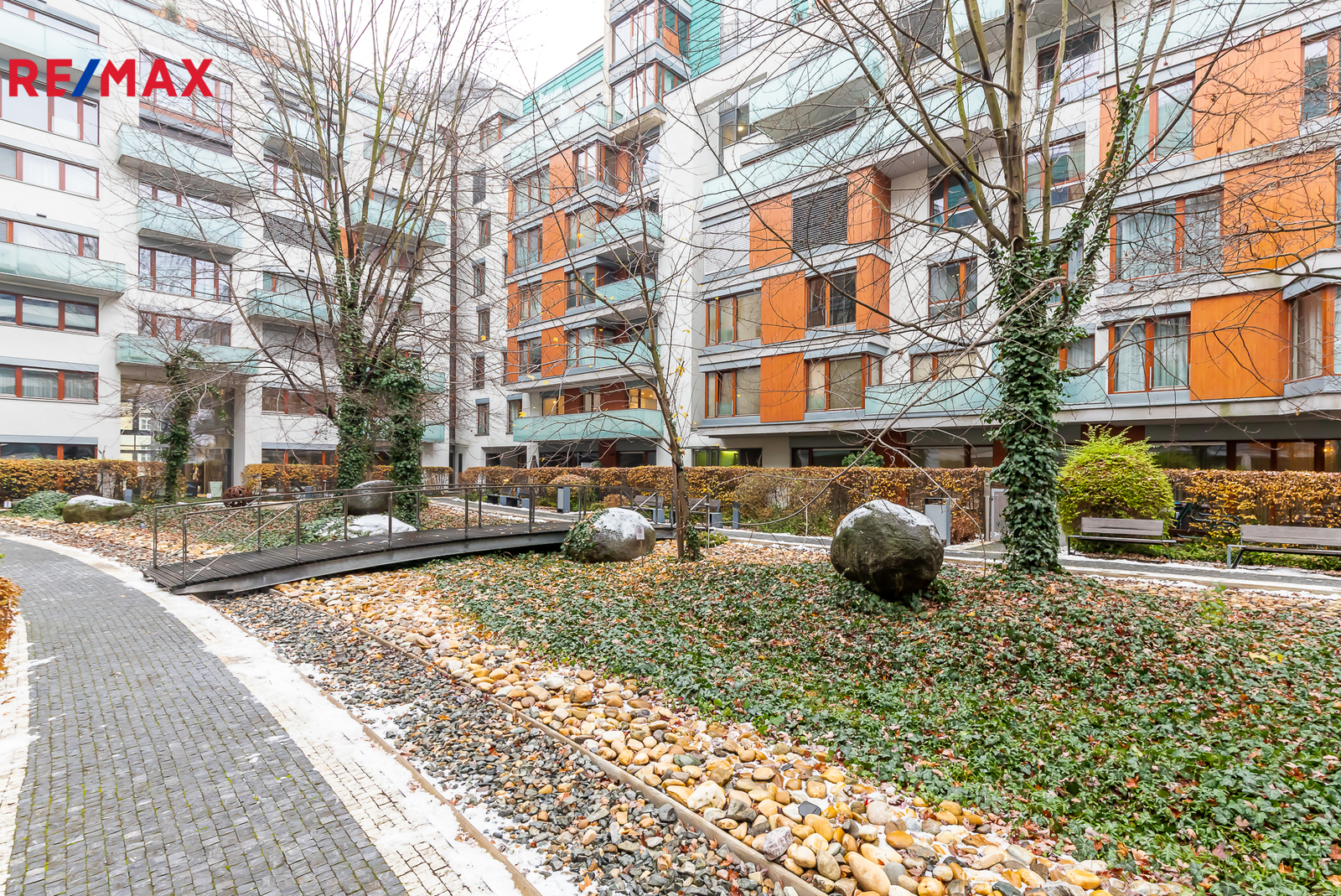 Byt je orientovaný do klidného vnitrobloku s japonskou zahradou, což zajišťuje naprosté soukromí a příjemnou atmosféru uprostřed dynamicky se rozvíjejícího Karlína.