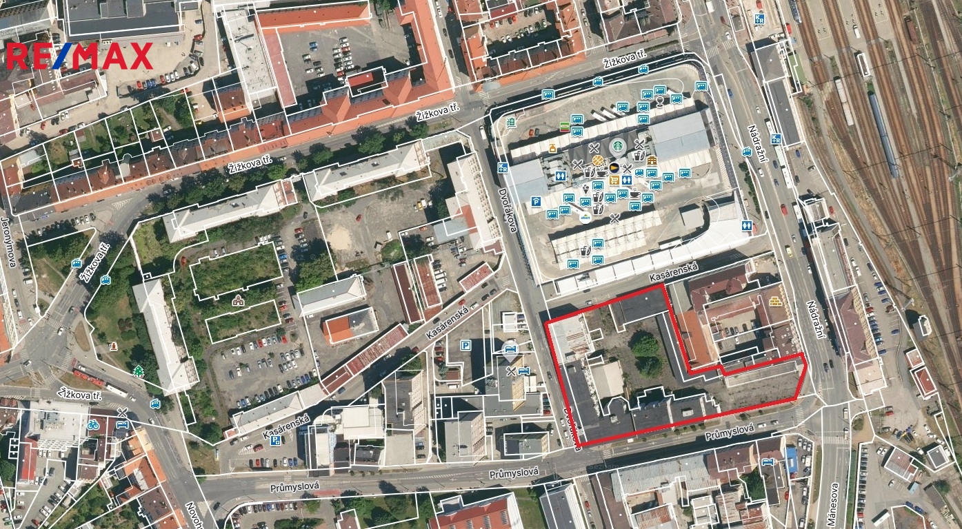 Atraktivní poloha v Průmyslové ulici – přímé napojení na hlavní silniční tahy, dostupnost MHD i městského okruhu.