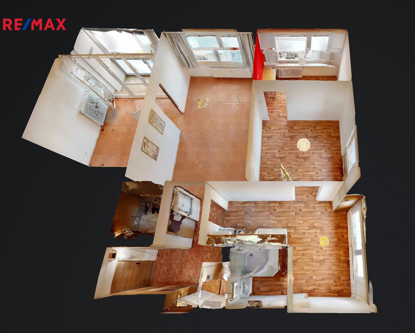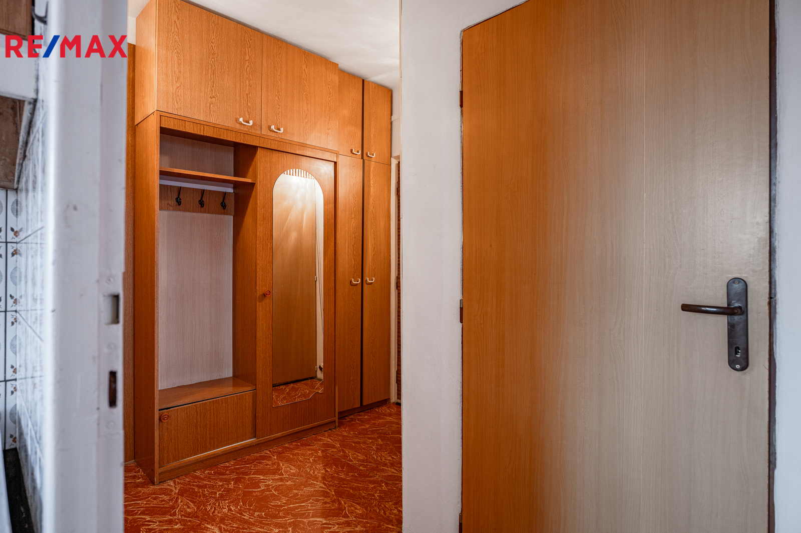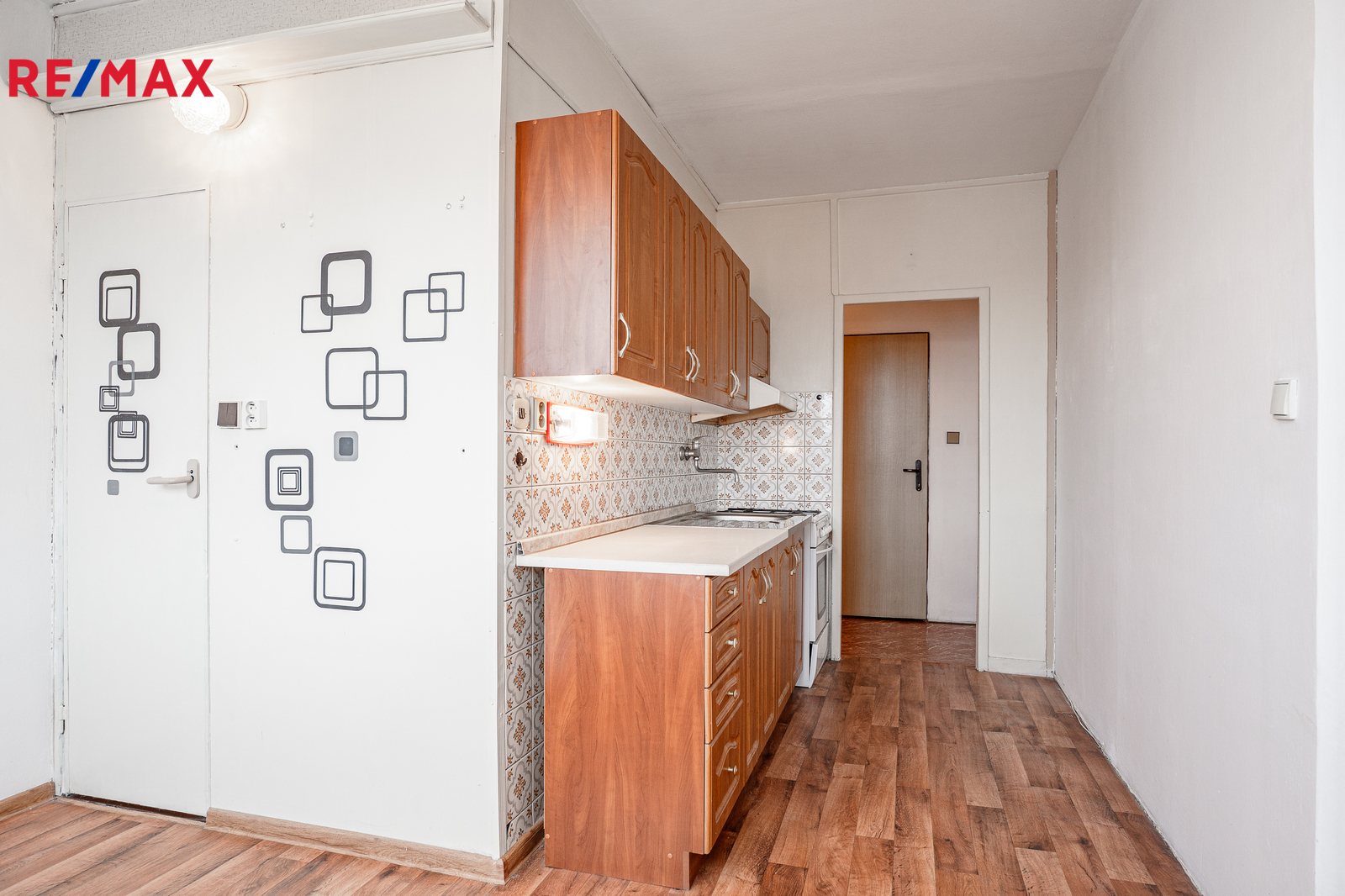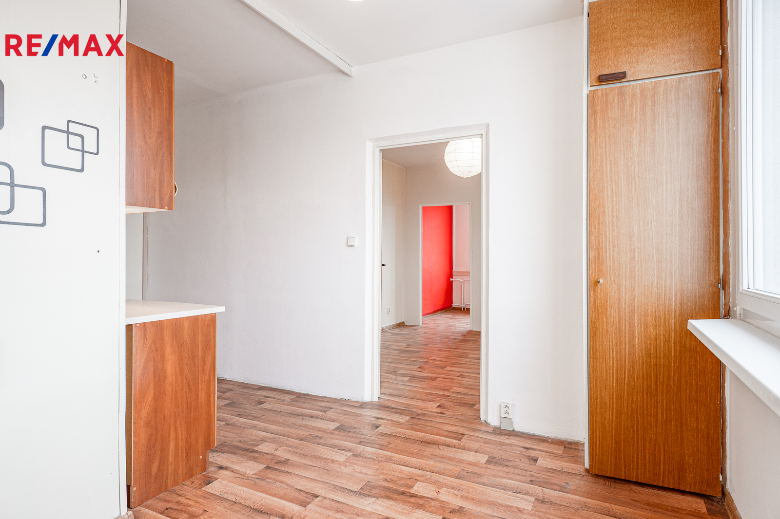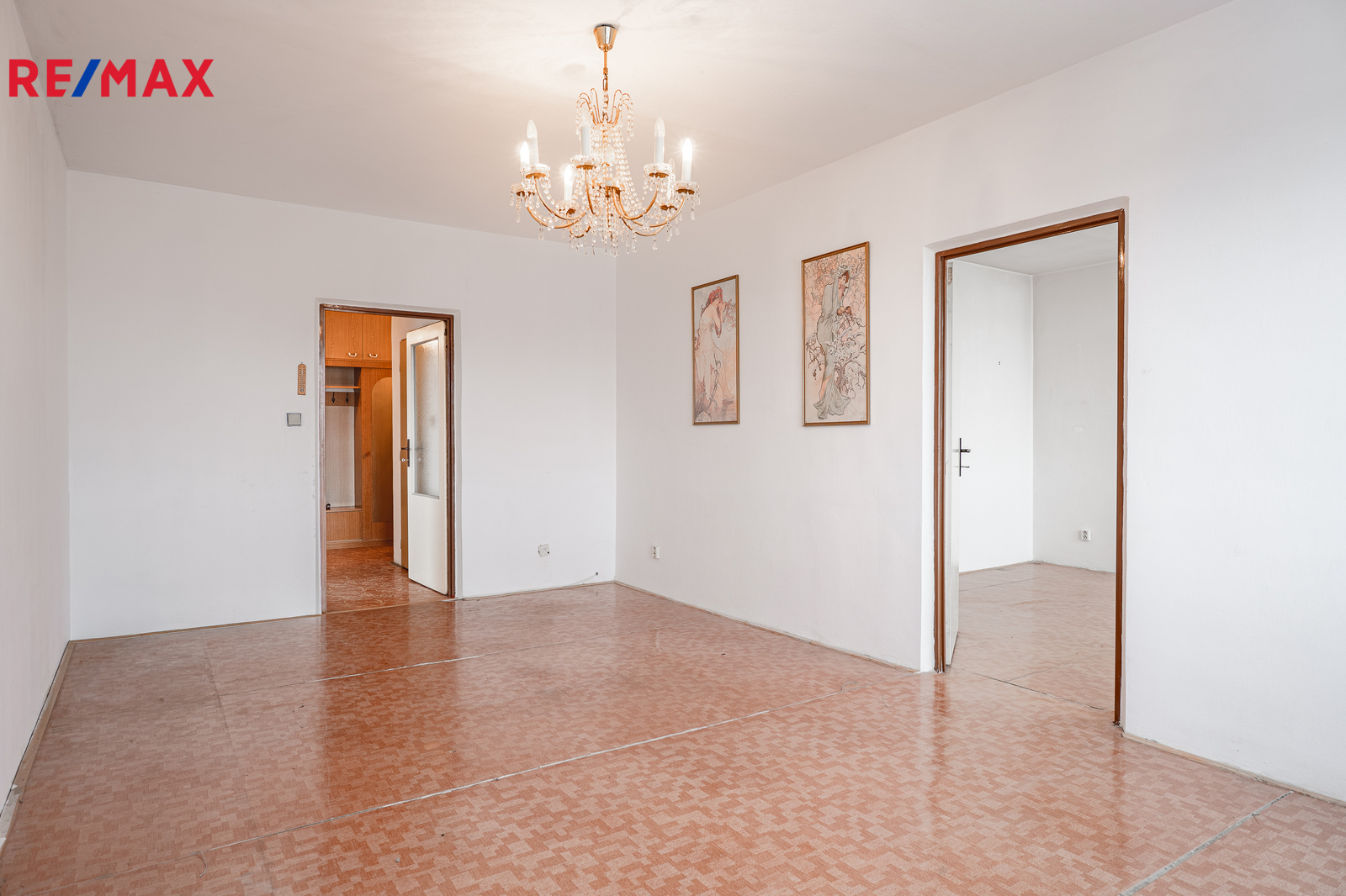 Nabízím prostorný byt 4+1 v posledním 8. patře panelového domu po kompletní revitalizaci (střecha, výtah, okna, stoupačky, fasáda, atd). Užitná plocha 76,3 m² + zasklená lodžie 3,2 m² a sklepní kóje. Byt je v původním stavu, takže umožňuje úpravu dispozice nebo dvougenerační řešení – v minulosti byly dva obývací pokoje odděleně užívány.