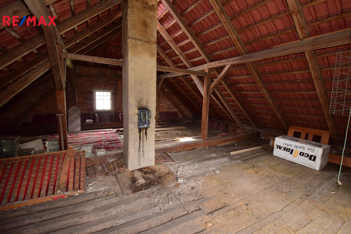 Půda je kompletně vyklizená, suchá a připravená pro vestavbu dalších místností – skvělá možnost, jak dům rozšířit bez složitých zásahů.