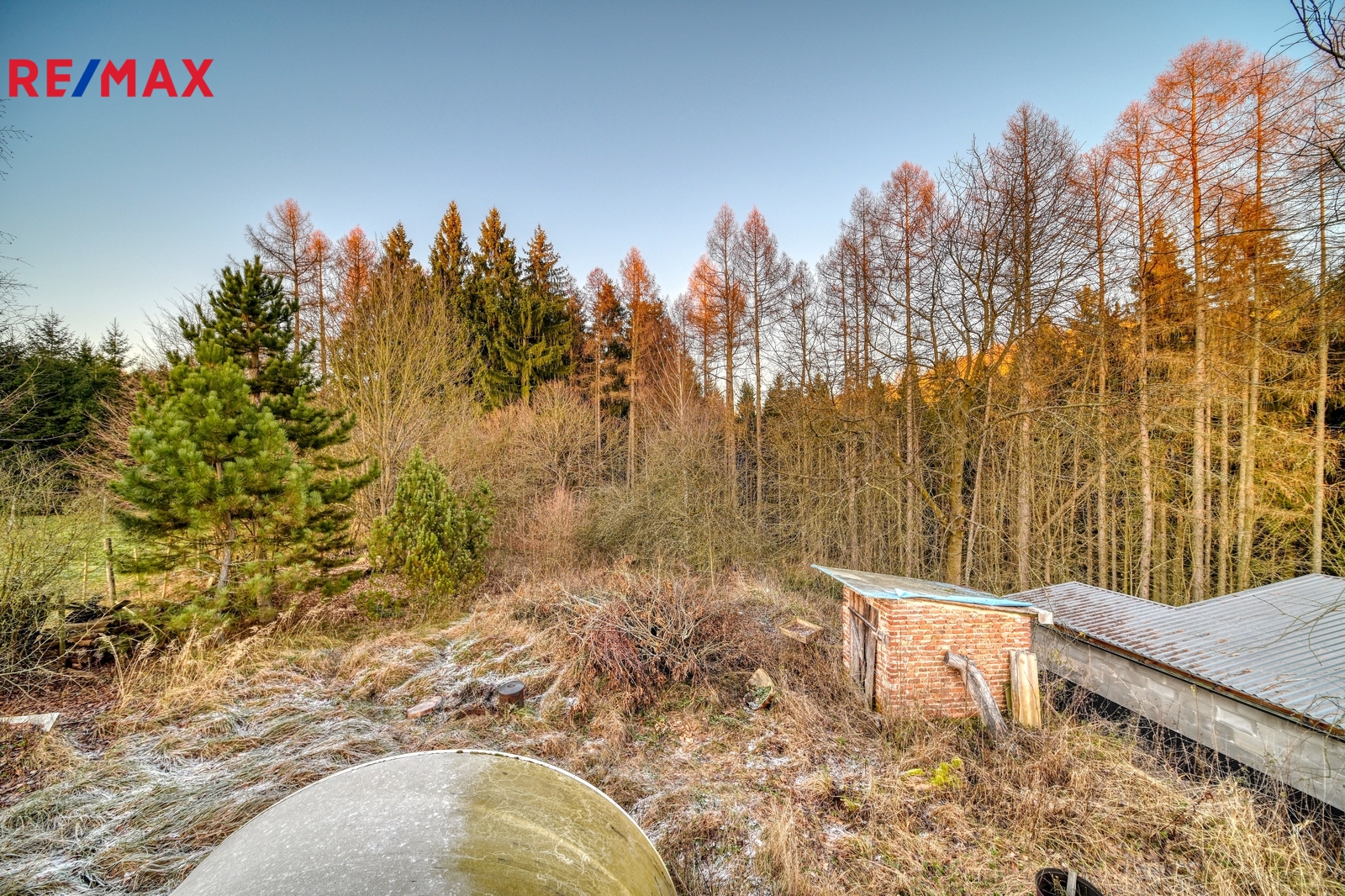 Pozemek o celkové výměře 2 307 m² nabízí dostatek prostoru pro zahradu, odpočinek či další využití. Na pozemku se nachází kolna. Voda je obecní, odpady svedeny do septiku.