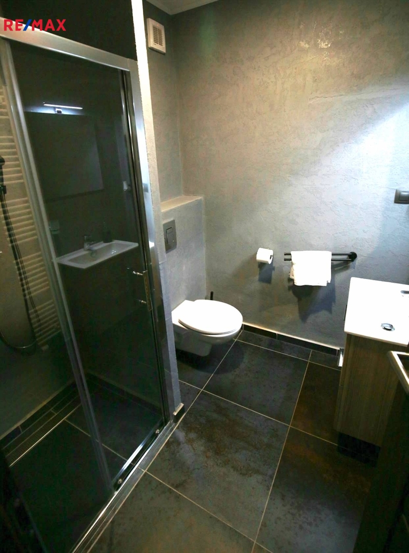 Tento moderní byt se skládá z předsíně, pokoje s kuchyňským koutem a koupelny s WC. Byt má podlahové vytápění s individuálním ovládáním v každé místnosti.