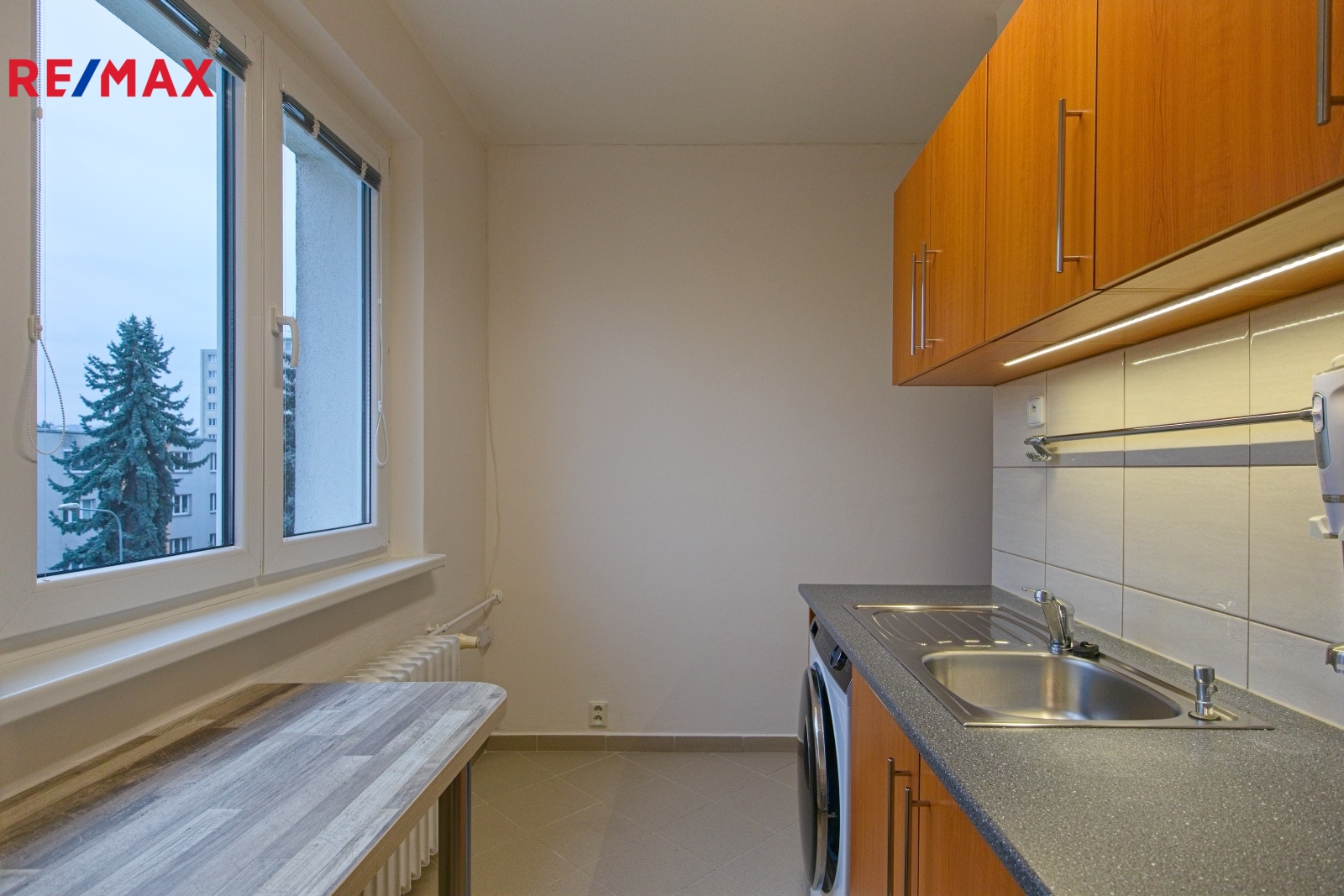 Byt je po celkové renovaci a obývací pokoj i kuchyně jsou orientovány na jih. Bytové jádro je zděné, s novými rozvody elektřiny pro koupelnu a kuchyni. Byt je kompletně vyklizen, vymalován a připraven k nastěhování. Součástí bytu je kuchyňská linka včetně vestavěné automatické pračky. Provozní náklady bytu aktuálně vychází na 4.073,-Kč.