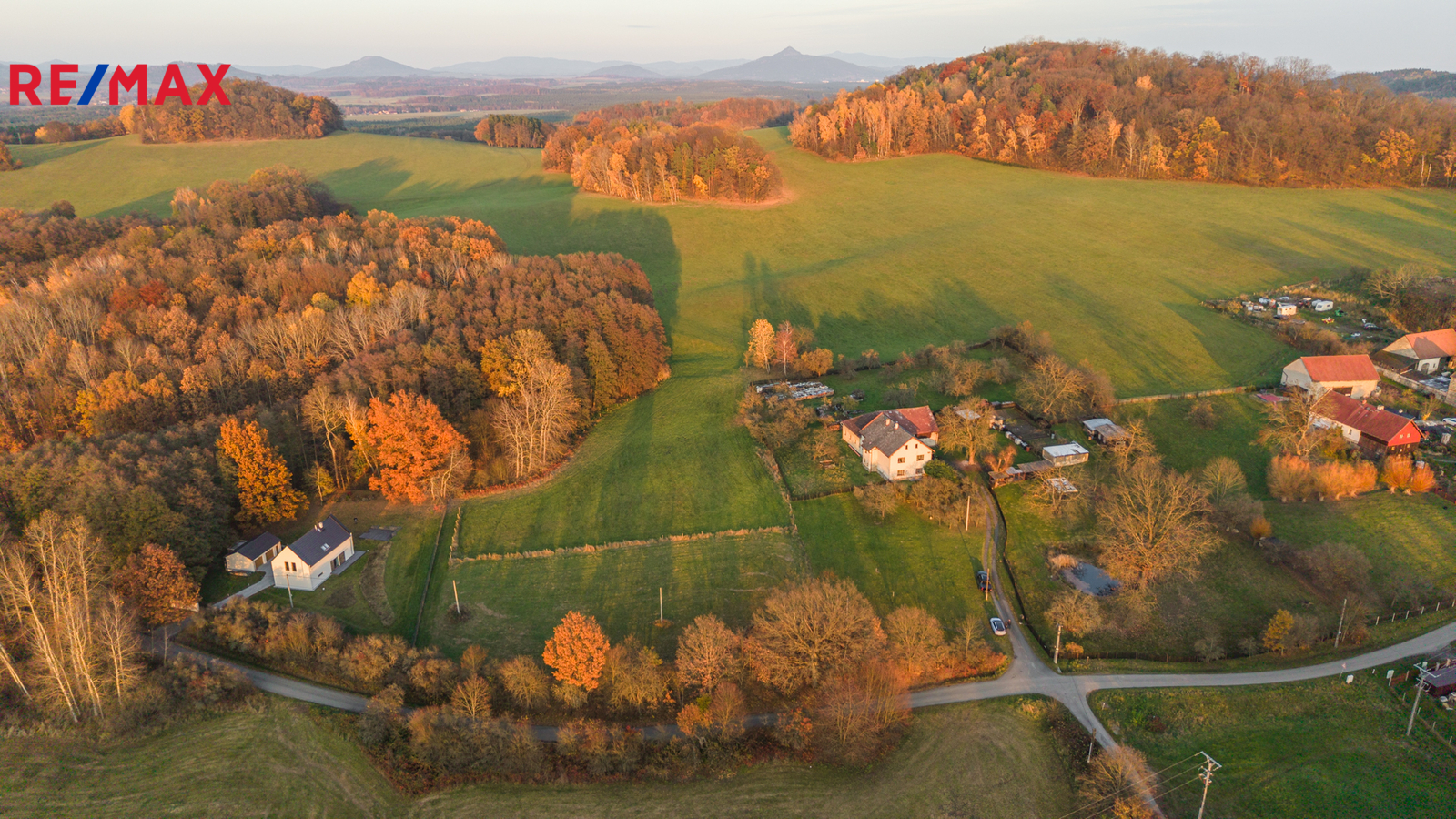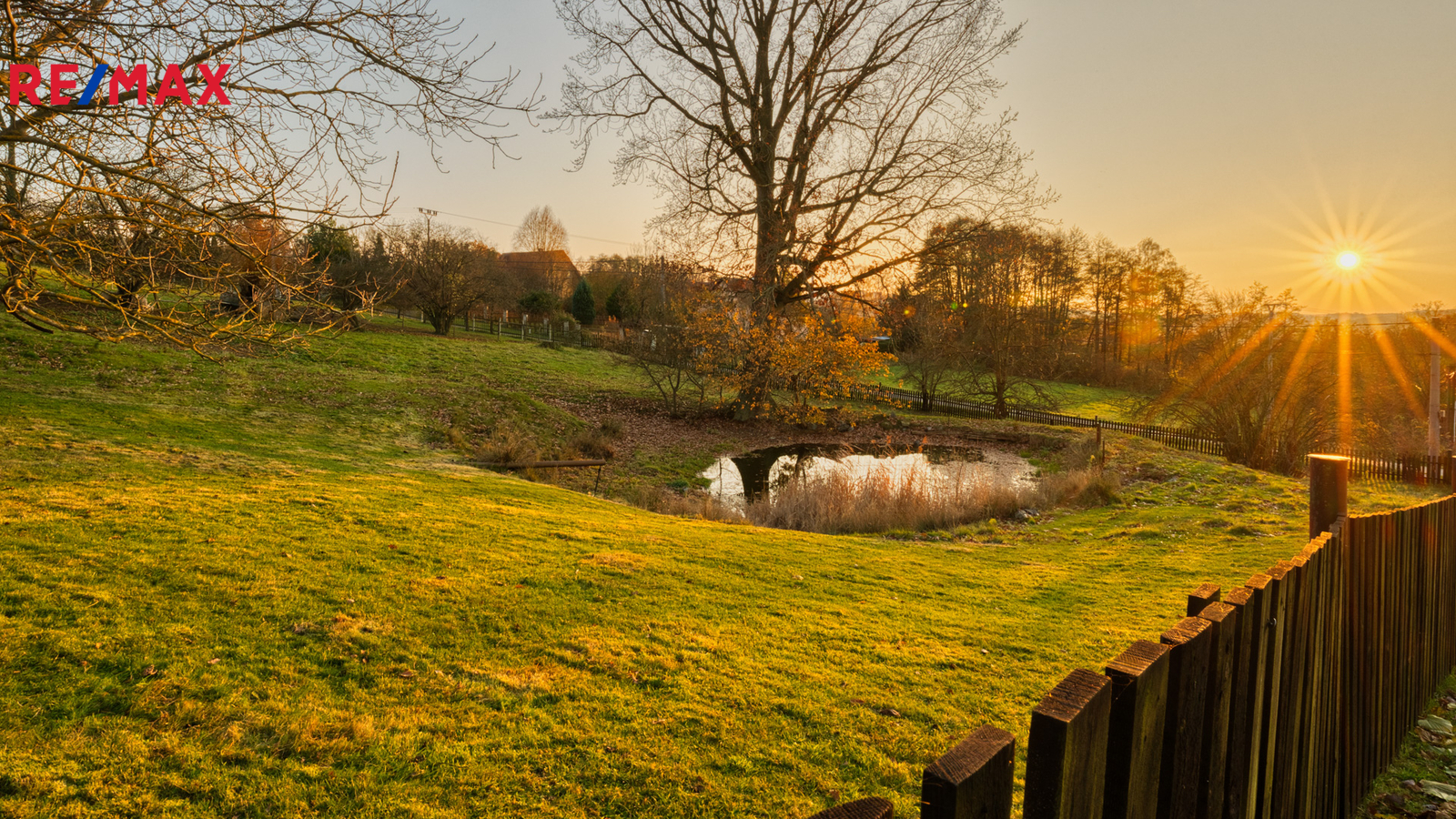Pozemek obklopují louky, lesy a otevřená krajina, takže i při práci na zahradě nebo při odpočinku na terase máte pocit, že jste úplně sami, a přesto je civilizace na dosah.