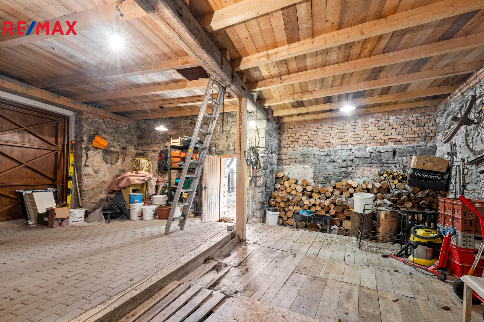 Stodola (část C) nabízí dostatek prostoru pro garážování, dílnu, sklad nářadí a dřeva na topení. I tato část má 2 podlaží, horní patro může v budoucnu sloužit např. pro rozšíření ubytovací kapacity. Za stodolou se nachází další parkovací místa.