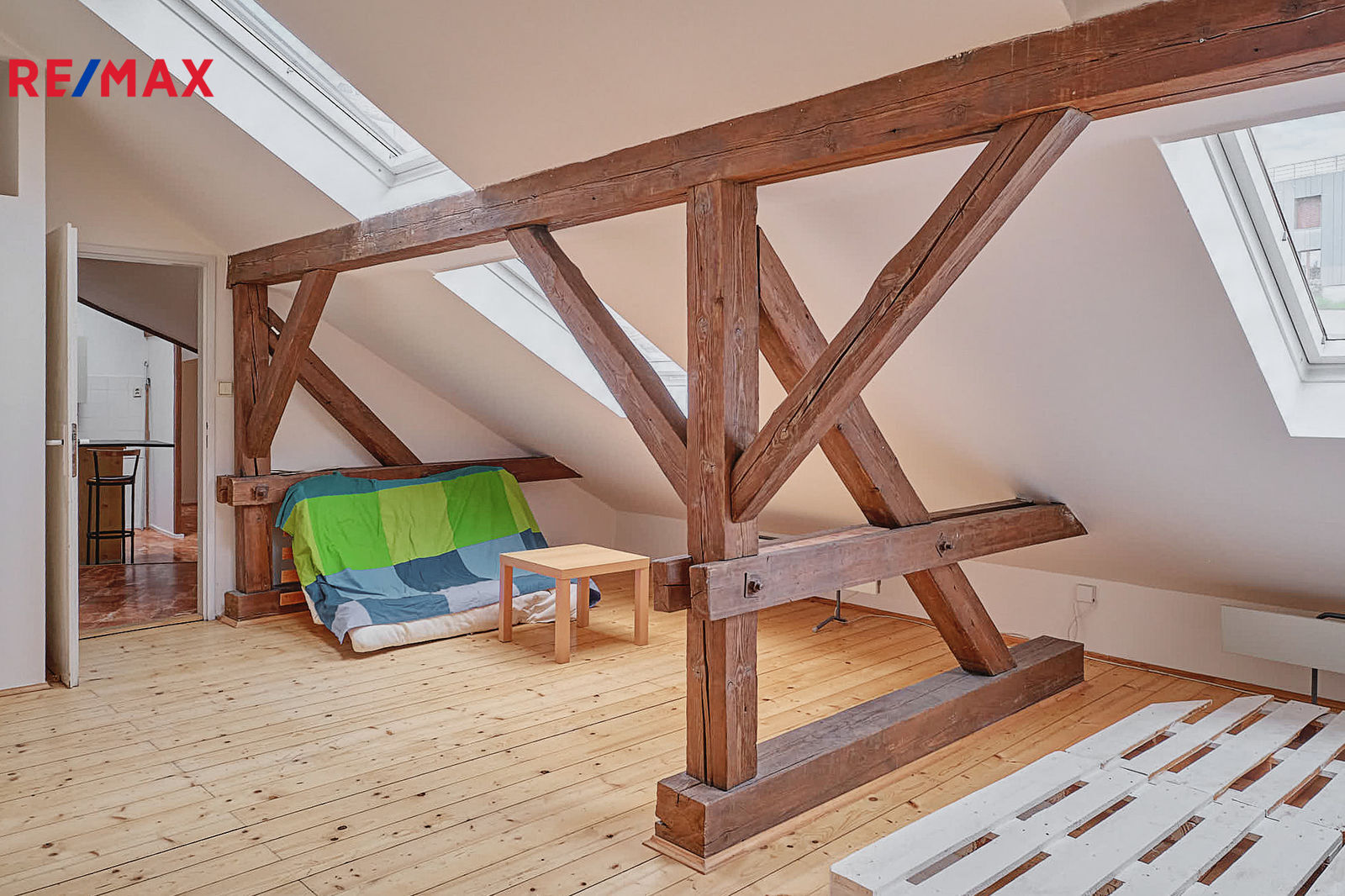 Pronájem stylového bytu 2+1 o velikosti 77 m² po částečné rekonstrukci v samotném srdci Prahy. Byt je klimatizován a nachází se v podkrovních prostorech historické budovy bez výtahu v ulici Palackého.