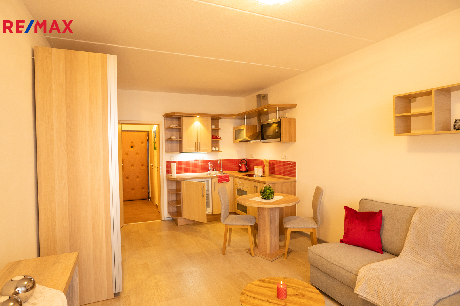 Užitná plocha činí 27 m² a součástí je také sklepní prostor o velikosti 2 m², ideální pro uskladnění sezónních věcí či sportovního vybavení. Byt je částečně vybavený, což umožňuje rychlé a bezproblémové nastěhování.