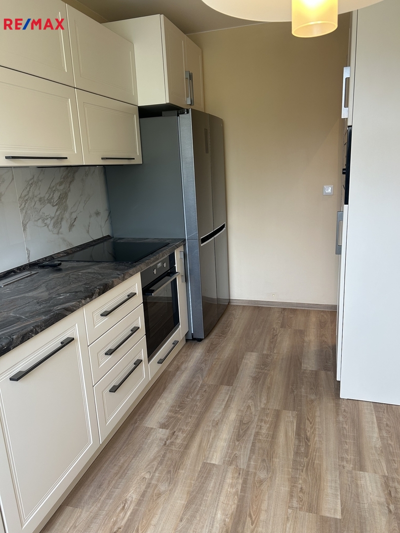 Ve výhradním zastoupení Vám nabízíme k prodeji po kompletní rekonstrukci byt v osobním vlastnictví o dispozičním řešení 3+1 s lodžií na ulici Vlkova, Brno – Líšeň, který se nachází v 3.NP ze 7.NP panelového domu, který prošel kompletní revitalizací. Nemovitost disponuje třemi neprůchozími pokoji, vstupní chodba (6,62m2) kde se nachází vestavná zrcadlová skříň, (zůstává součástí prodeje) dále po levé straně se nachází ložnice (12m2), obytná místnost (17,5m2) se vstupem na zasklenou lodžii o výměře 6m2. Naproti chodbě se nachází menší pokojík (8m2). Dále vstup do kuchyně, kde se nachází nová kuchyňská linka (9,30m2) na míru se všemi vestavěnými spotřebiči značky Electrolux, indukční varná deska, odsavač, horkovzdušná trouba, myčka nádobí značky Electrolux a LG americká lednice, kuchyňská linka zůstane součástí prodeje se všemi spotřebiči, rok realizace 2021. Koupelna (2,70m2) prošla kompletní rekonstrukcí, zděné jádro se sprchovým koutem, příprava pro pračku a sušičku (set nad sebou, který není součástí prodeje), zrcadlová skříňka a umyvadlo se skříňkou. Samostatné WC (0,9m2). Bytová jednotka prošla kompletní rekonstrukcí v roce 2021 včetně elektroinstalace, vodoinstalace, nové vinylové podlahy, zděné jádro, SDK podhledy a stěny, nová plastová okna ( v hodnotě 1,5 mil). V rámci revitalizace došlo k opláštění pláště, nová fasáda, společné prostory, elektroinstalace, lodžie /zasklení/, oprava sklepů atd. Na bytové jednotce nevázne žádné právní zatížení, lze financovat hypotečním úvěrem, který Vám rádi zprostředkujeme za výhodných podmínek. Bytová jednotka bude uvolněna po vlastnickém právu. Více na videoprezentaci a na fotografiích. Bytová jednotka zůstane částečně vybavena (KL, skříň, koupelna). K bytu přináleží sklepní kóje, která se nachází v suterénu bytového domu. Parkování na přilehlém veřejném parkovišti. V Líšni je výborná infrastruktura, obchody Billa, Lídl, Albert, vyhlášená restaurace Havana. Výborná dostupnost MHD tramvaj č. 8 z hlavního nádraží, autobusy, v dosahu letiště Tuřany, škola i školky prvního i druhého stupně, čerpací stanice, pekárna atd. V dosahu Mariánské údolí pro pěší turistiku i cykloturistiku. Více v RK, prohlídky po domluvě s makléřkou. PENB bude doložen ke Kupní smlouvě, nízké provozní náklady. Energetická třída C. Evidenční list na vyžádání u prohlídky. Více si řekneme na osobní prohlídce. Prodávající si vyhrazuje právo vybrat kupujícího na základě jím zvolených kritérií.