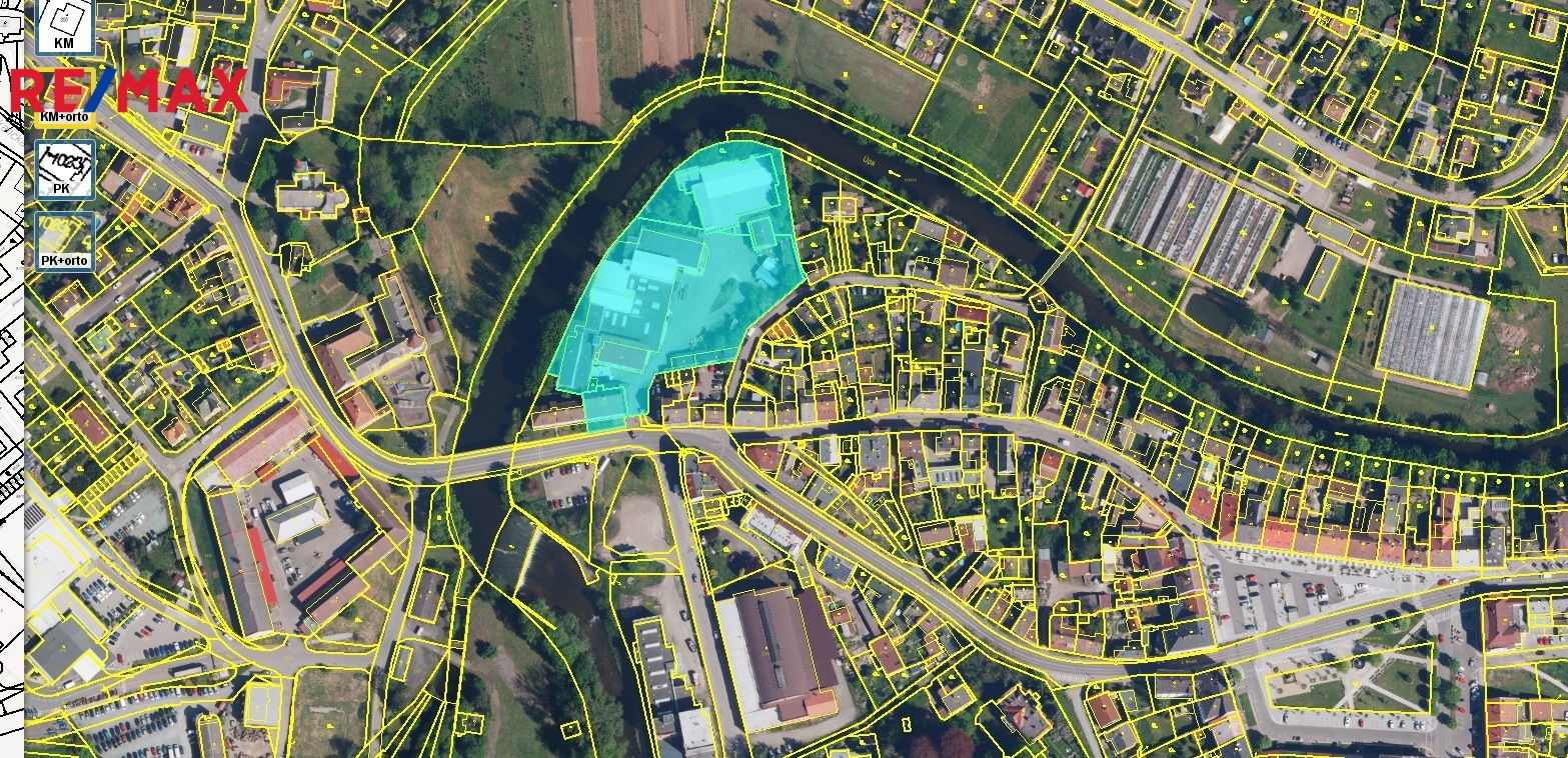 Prodej průmyslového areálu s pozemky o rozloze 12481 m2 v centru České Skalice, 10 km od dálnice.