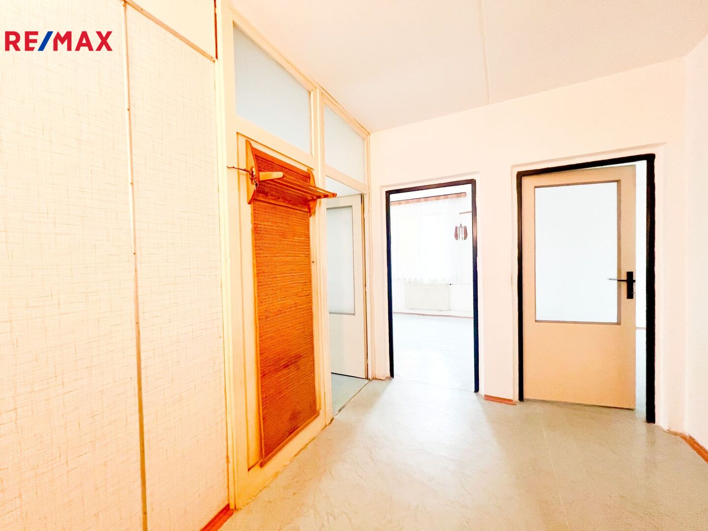 Prostorná vstupní chodba nabízí místo pro odkládání obuvi a oblečení. Kuchyně je vybavena funkční linkou a plynovými kamny, ideální pro rodinné stolování. Tři samostatná neprůchozí pokoje zajišťují soukromí, přičemž jeden z pokojů má přístup na zasklenou lodžii. K dispozici je samostatná koupelna s vanou a WC. Součástí bytu je také sklepní kóje a parkování přímo před domem.