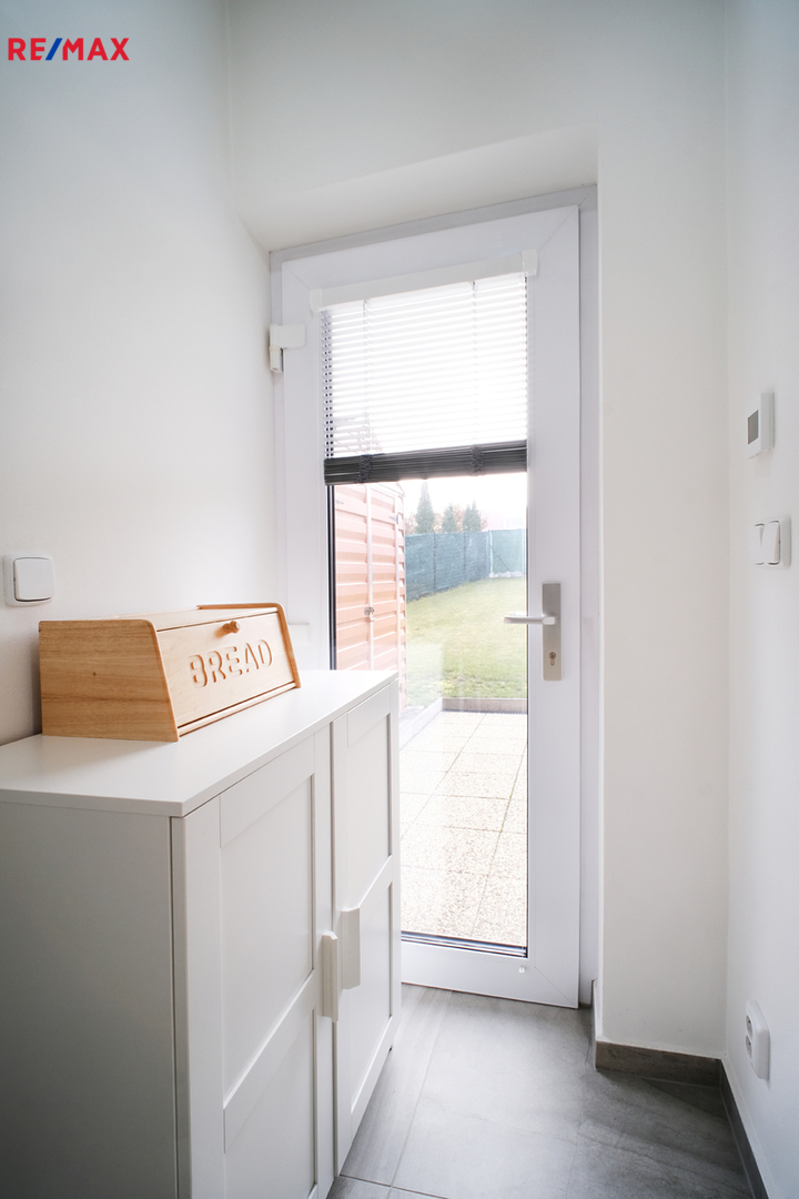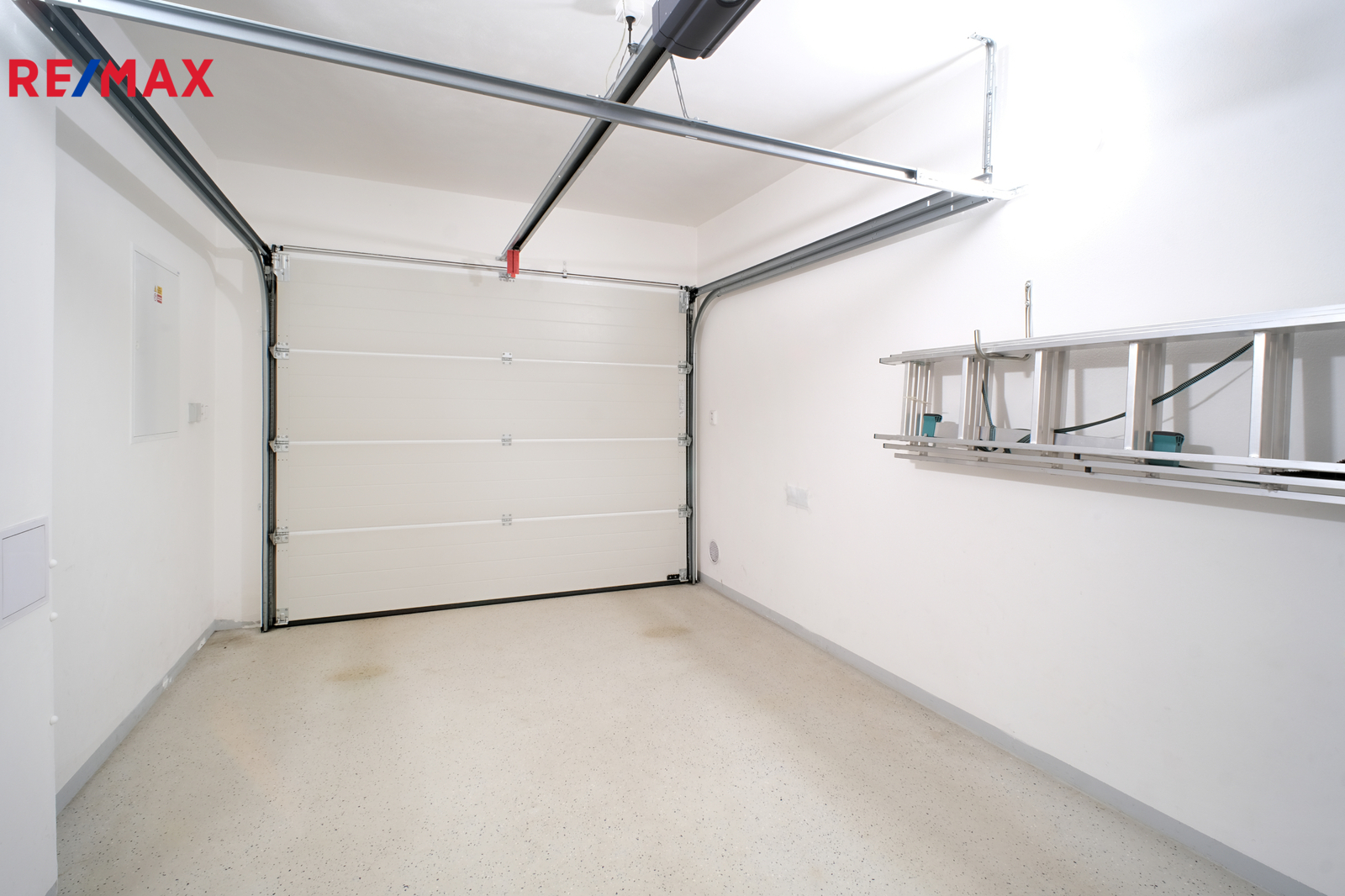 Dům má vlastní garáž se vstupem přímo do domu, elektrická garážová vrata a další dvě vyhrazená parkovací místa přímo před ním. Do domu tak vstupujete vždy suchou nohou, ať venku prší nebo sněží.