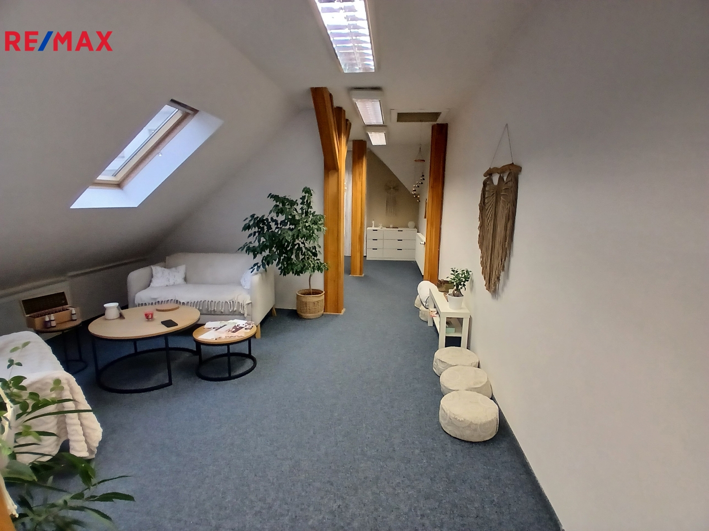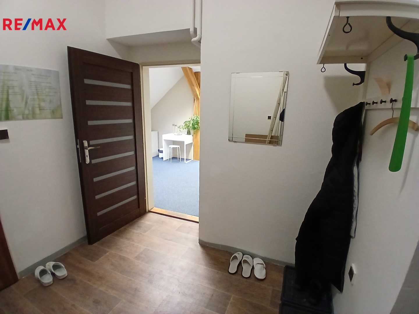 Sociální zázemí (kuchyňka, toalety) je společné na patře. Volné od 1.1.2026.