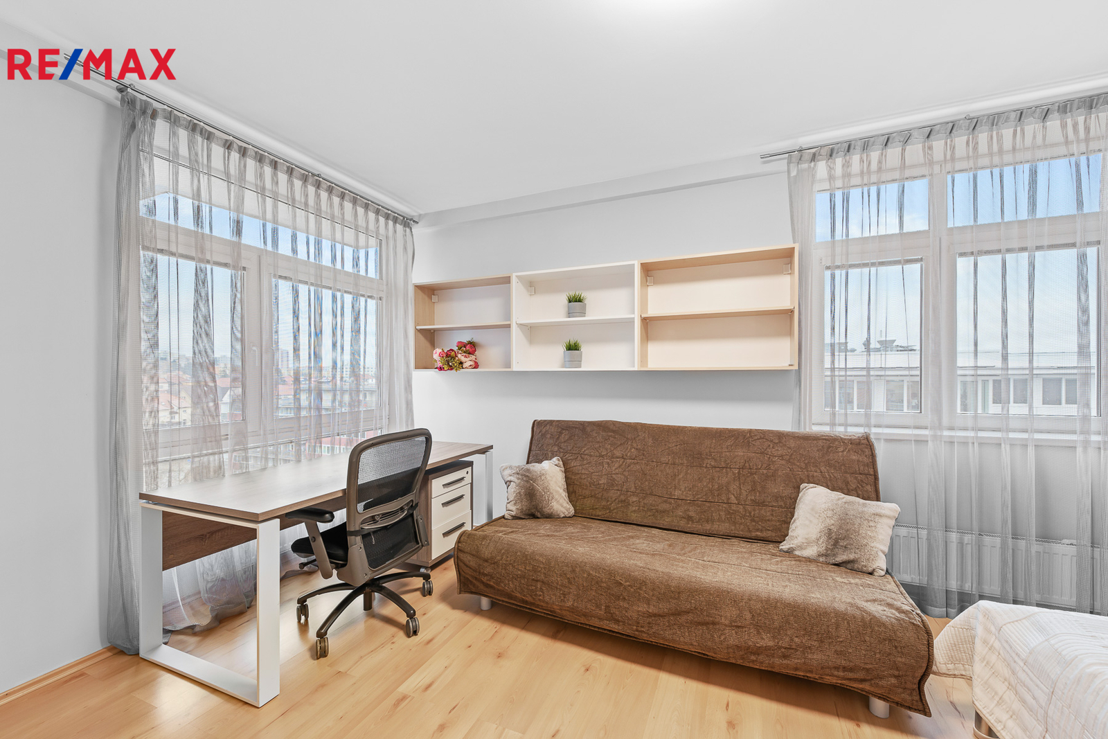 Nabízíme k pronájmu prostorný a světlý byt 3+kk o výměře 104 m², umístěný v 9. patře moderního dvacetipodlažního domu na prestižní adrese Vinohradská 165, Praha 10 – Strašnice. Dům je ve velmi dobrém stavu, disponuje dvěma výtahy, parkováním a také recepcí, která zajišťuje vyšší komfort i bezpečí pro obyvatele.