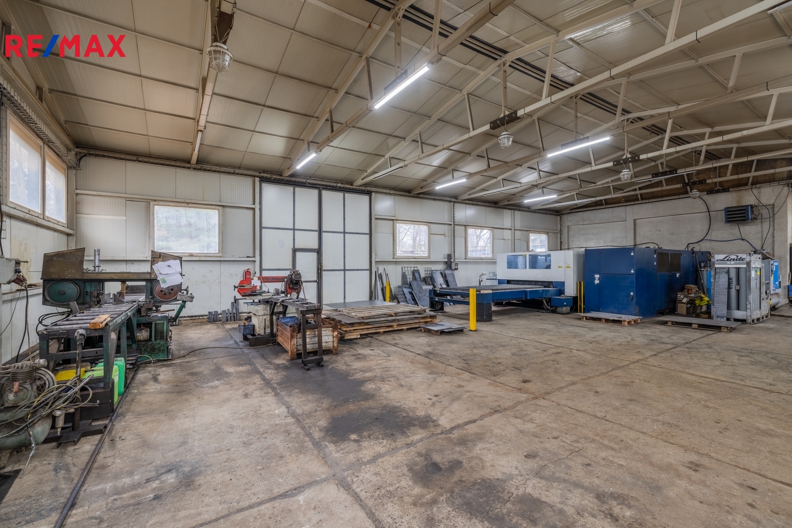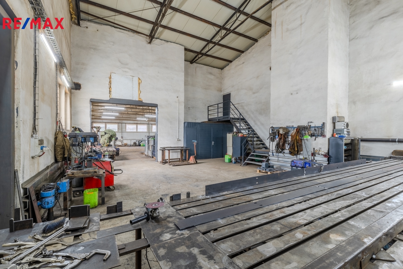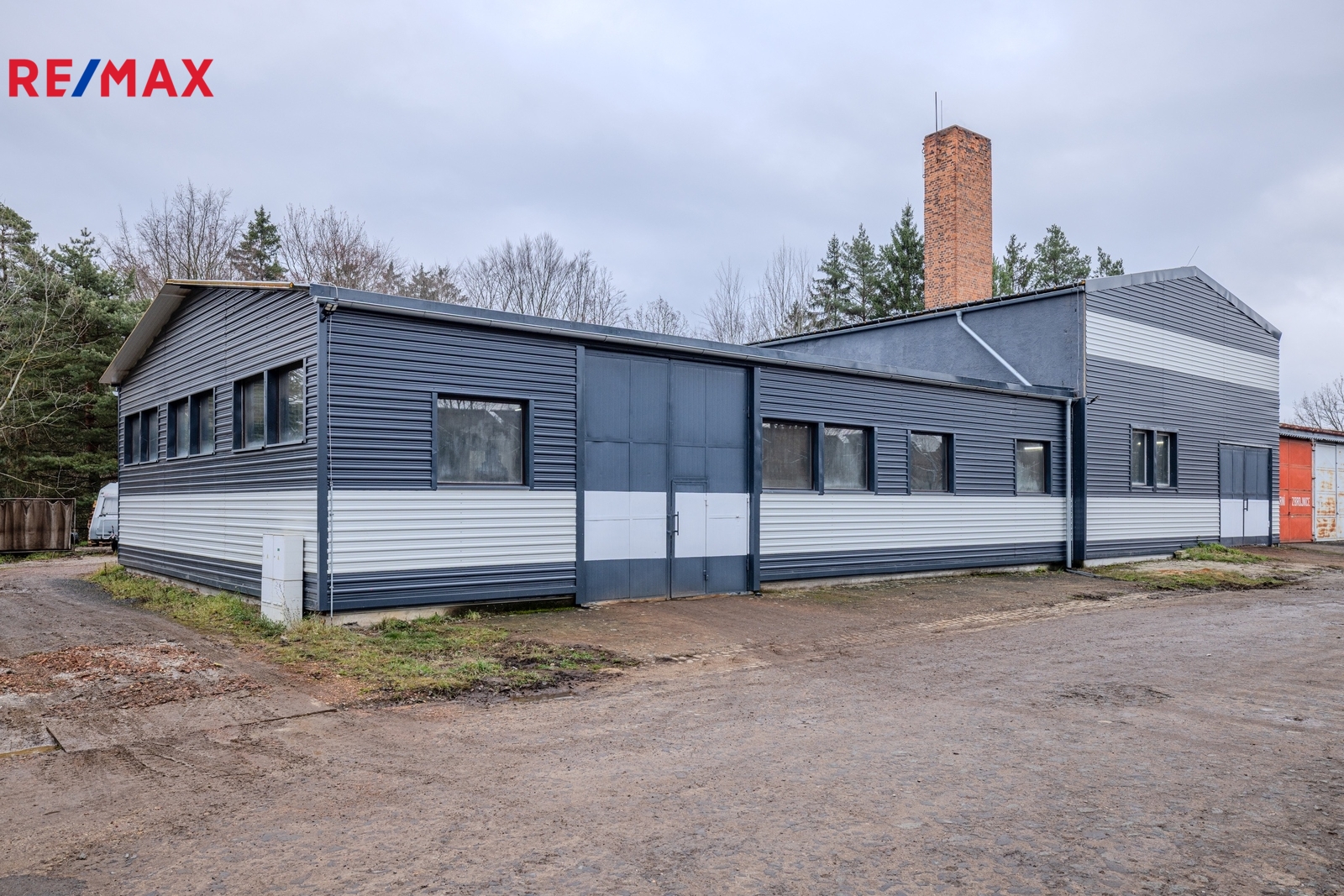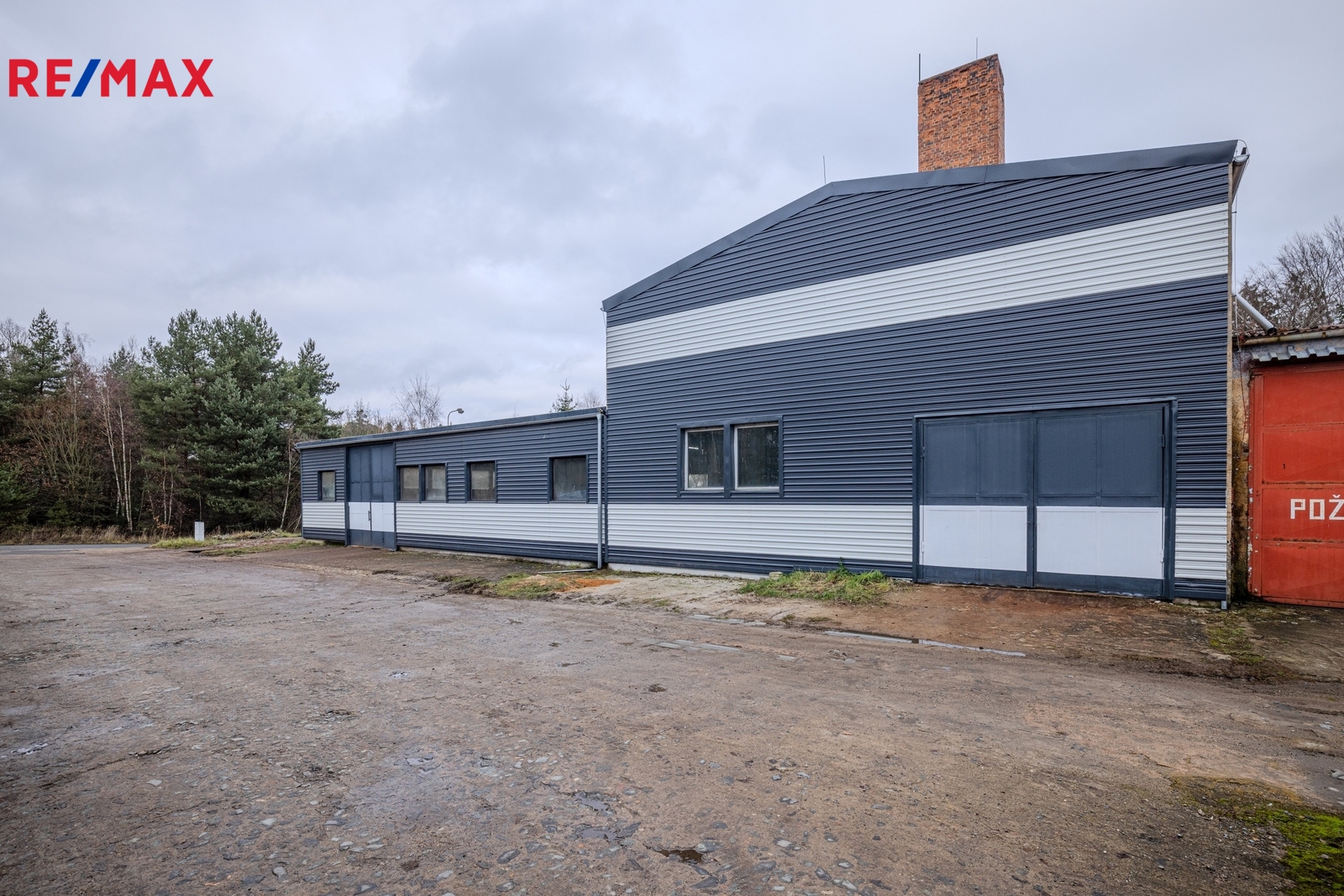 Díky třem vjezdům a dostatečné výšce je vjezd kamionu bezproblémový. Objekt je vhodný pro výrobu, skladování, logistiku nebo jako technické zázemí firmy.