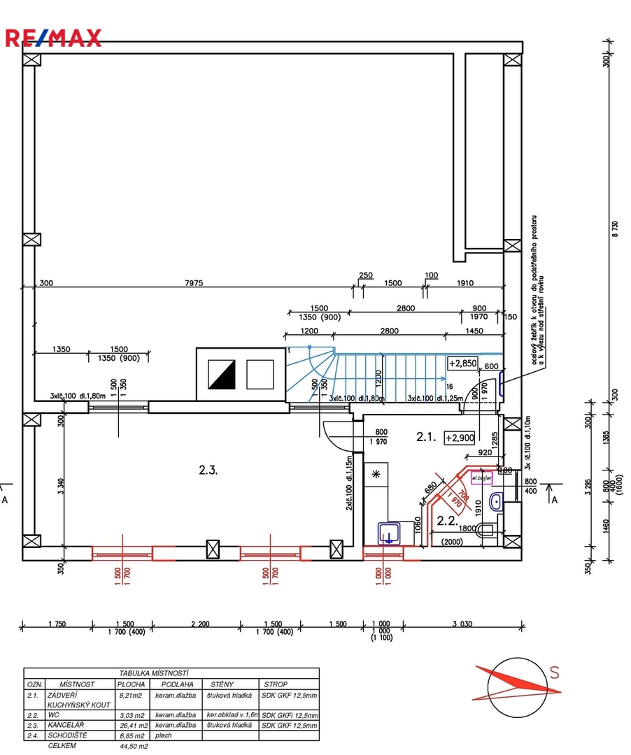 • kancelář v patře o výměře 60 m² s vlastním sociálním zázemím