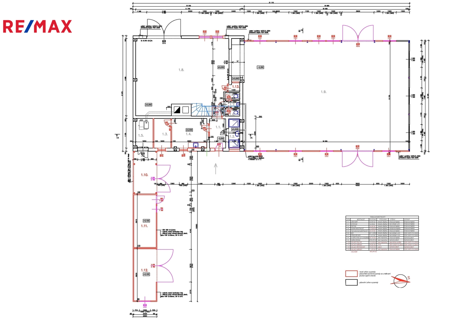 • šatny a sociální zařízení v přízemí