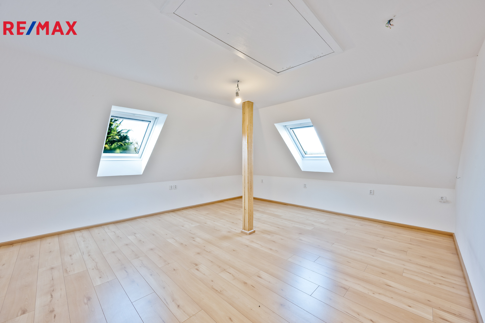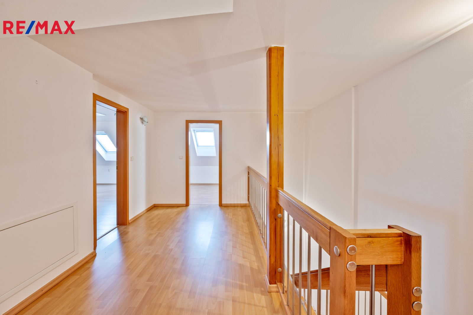 V obytném podkroví se nachází chodba se vstupy do dalších tří pokojů a koupelny s WC. Koupelna je zatím nedokončená, velkou výhodou je, že si ji každý může zařídit dle vlastních představ. Výměry jednotlivých místností a jejich dispozice jsou uvedeny ve fotogalerii.