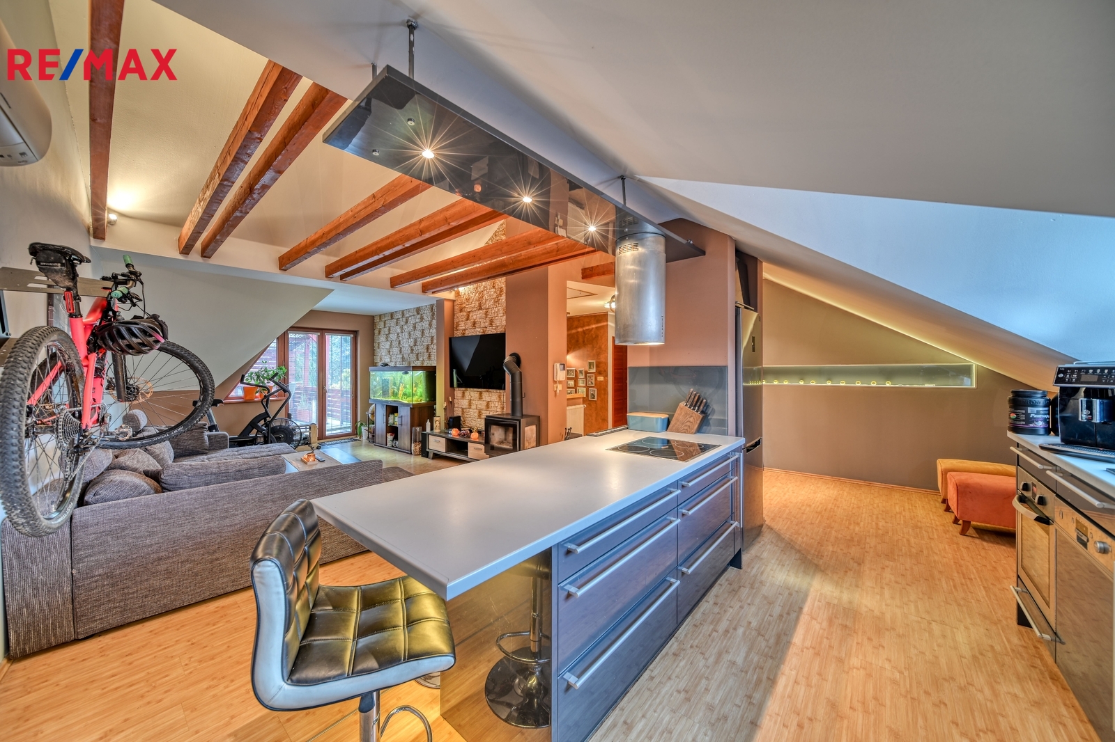 Byt je vybaven klimatizačními jednotkami pro maximální komfort v létě a zabezpečovacím systémem pro vaše bezpečí. Vytápění i ohřev vody zajišťuje moderní plynový kotel s kombinovanou funkcí. Celý interiér je zpracován z kvalitních materiálů, které podtrhují moderní a přitom domácký charakter tohoto bydlení.
