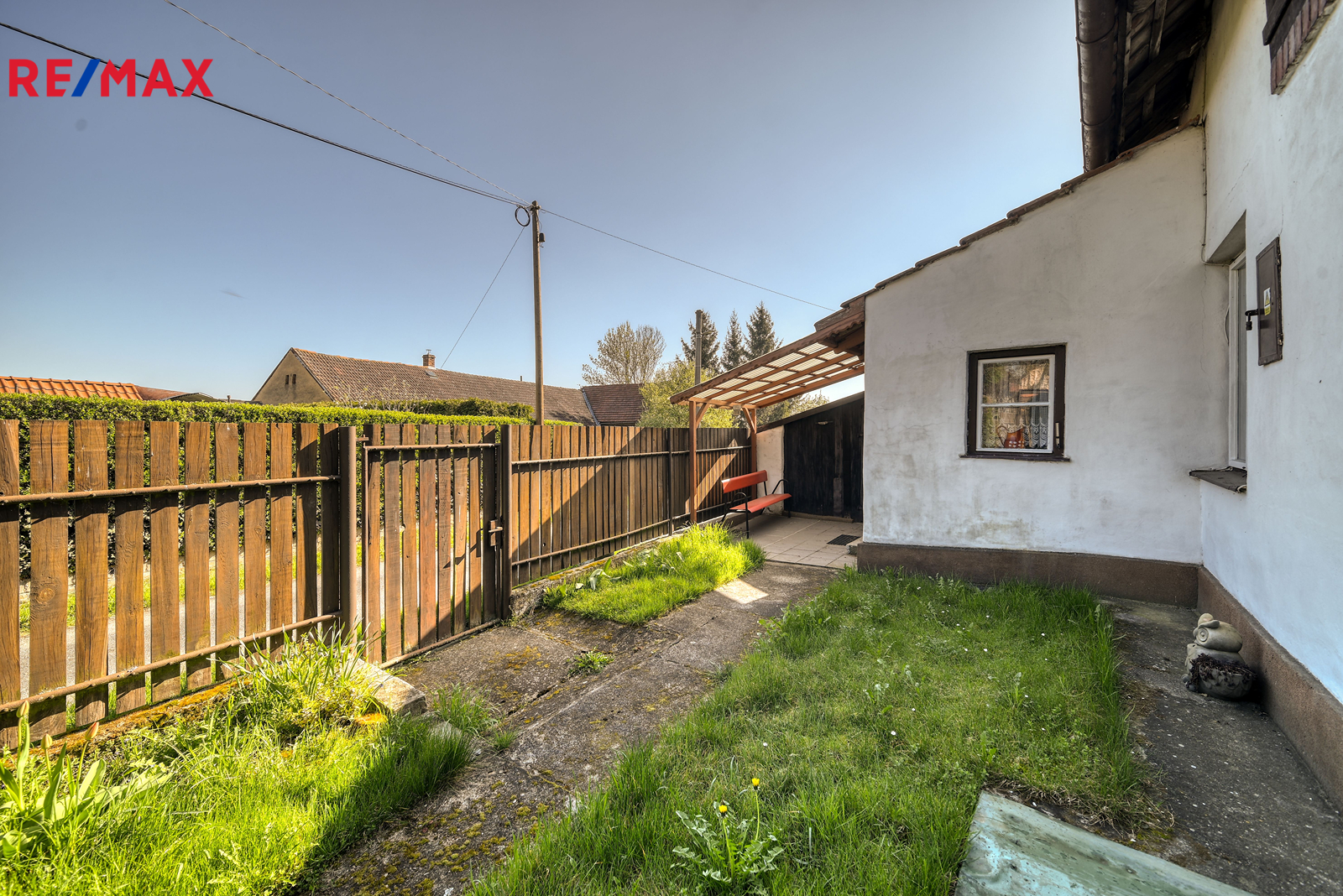 K chaloupce patří malá předzahrádka. V domě není koupelna a není zde zavedená voda. Nabízí se možnost vybudování vlastní studny nebo využívat pitnou vodu z obecní studny, která je vzdálená cca 20 metrů od domu. Toaleta je řešená chemickým WC. Možnost napojení na kanalizaci.