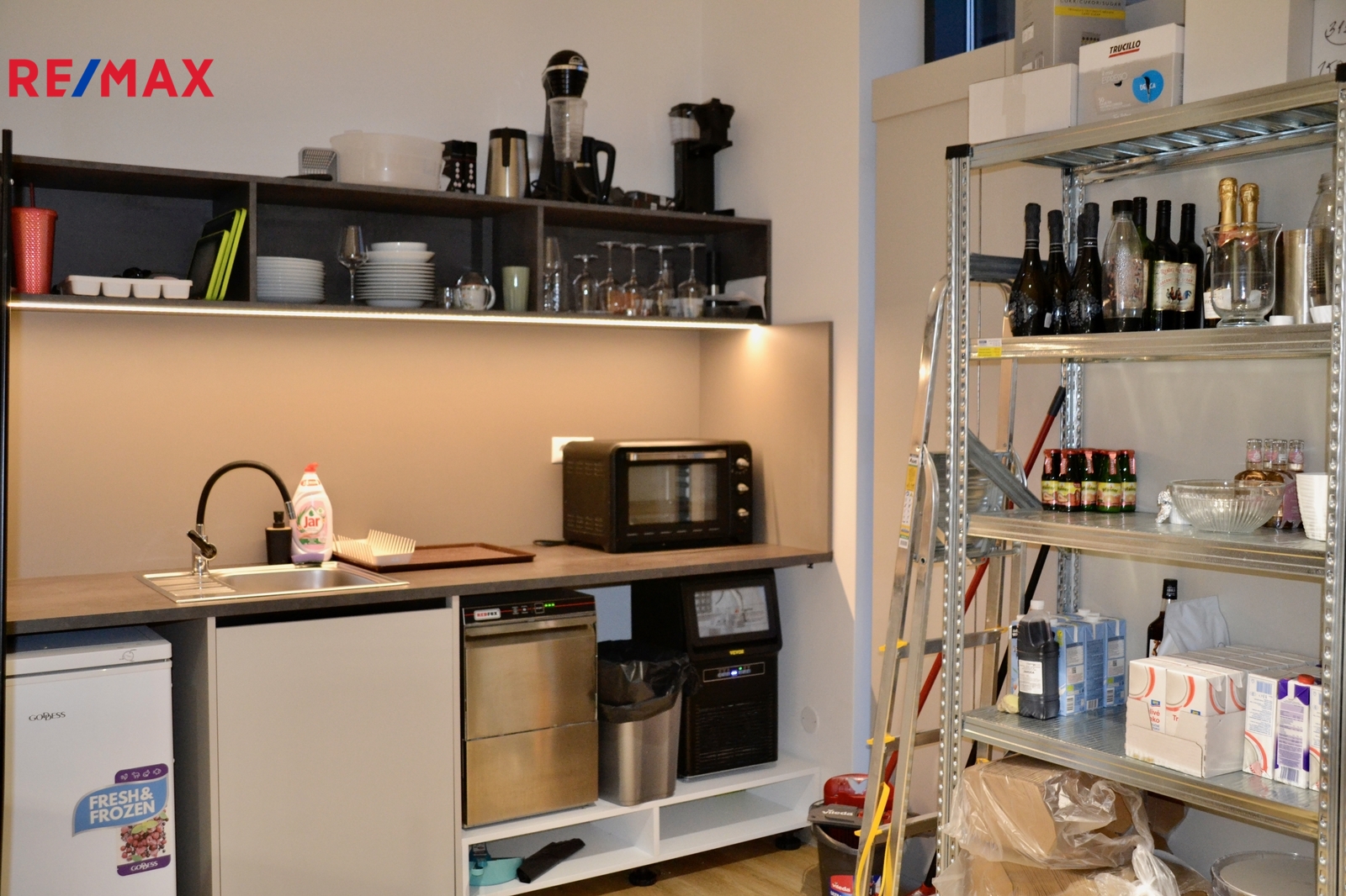 Stávající nábytek v prostoru zůstává. Provoz bude nájemci předán včetně dalšího vybavení dle specifikace v nájemní smlouvě, které se předá formou odkupu s povinností následného zpětného prodeje za stejných podmínek.