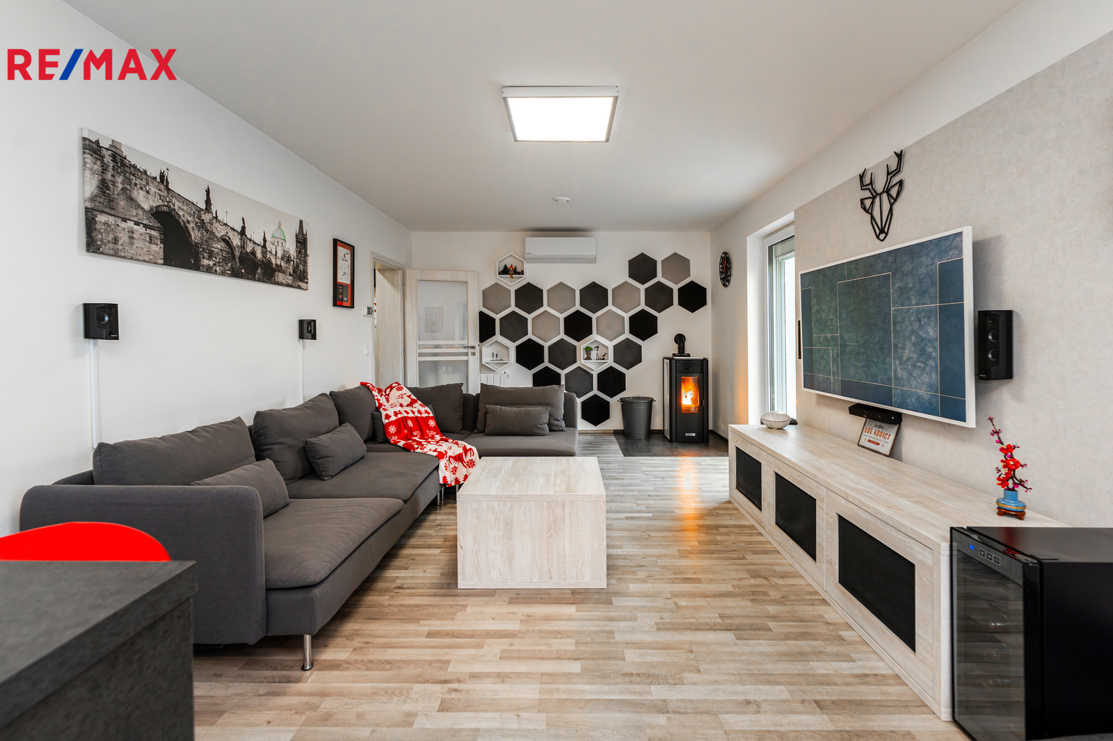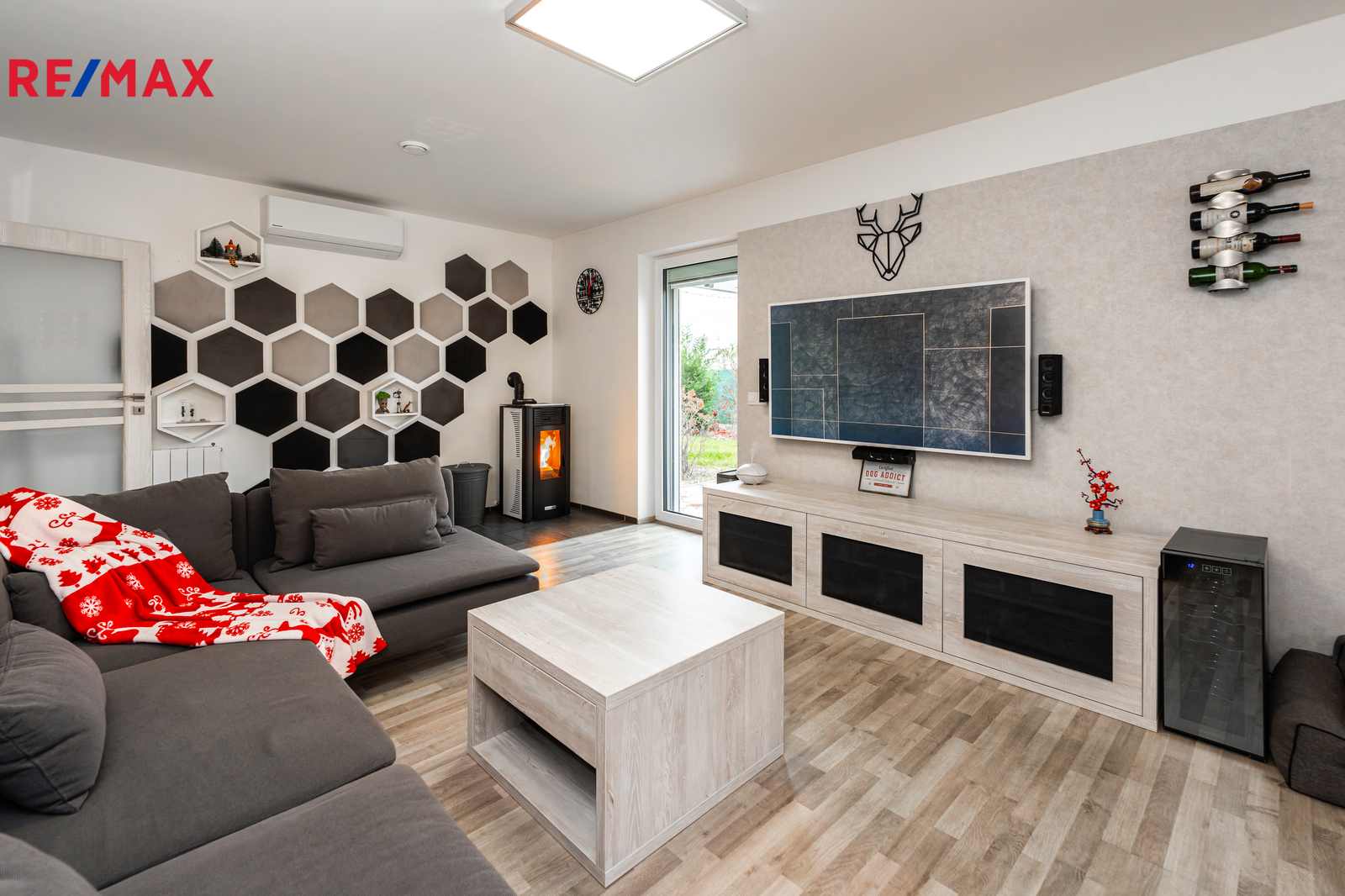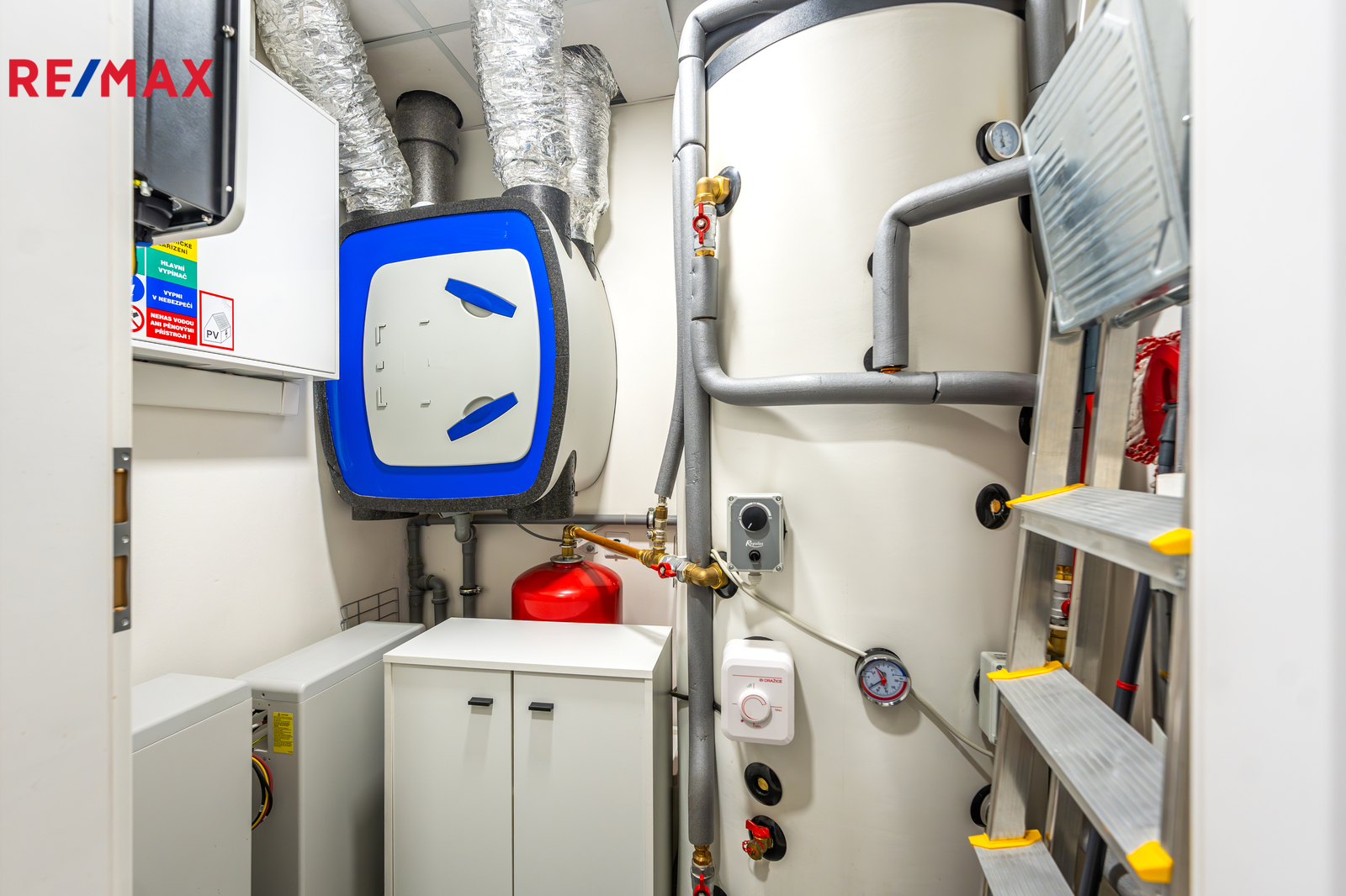 Energetické řešení domu je jedním z jeho největších benefitů. Veškeré vyrobené teplo je akumulováno do bojleru o objemu 123 litrů. O vytápění se stará kombinace radiátorů, klimatizace, peletových kamen s napojením na bojler a samozřejmě také rekuperace vzduchu. Klimatizace byla instalována v roce 2023. Celý systém doplňuje moderní fotovoltaika z roku 2024 — 16 solárních panelů, baterie 11,6 kWh a wallbox, vše od značky Solax. Díky tomu činily celkové roční provozní náklady za minulý rok pouhých 22 000 Kč. Náklady na vodu jsou přibližně 500 Kč na dospělou osobu.