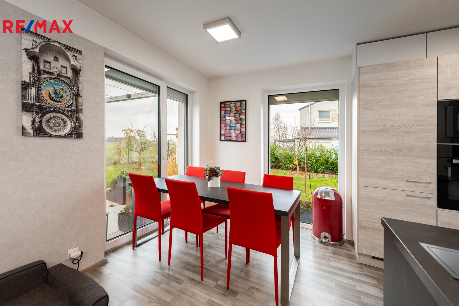 Z interiéru zůstává plně vybavená kuchyňská linka a vestavěné skříně. Velkou přidanou hodnotou jsou také velmi dobré sousedské vztahy v celé ulici — funguje zde aktivní sousedská skupina.