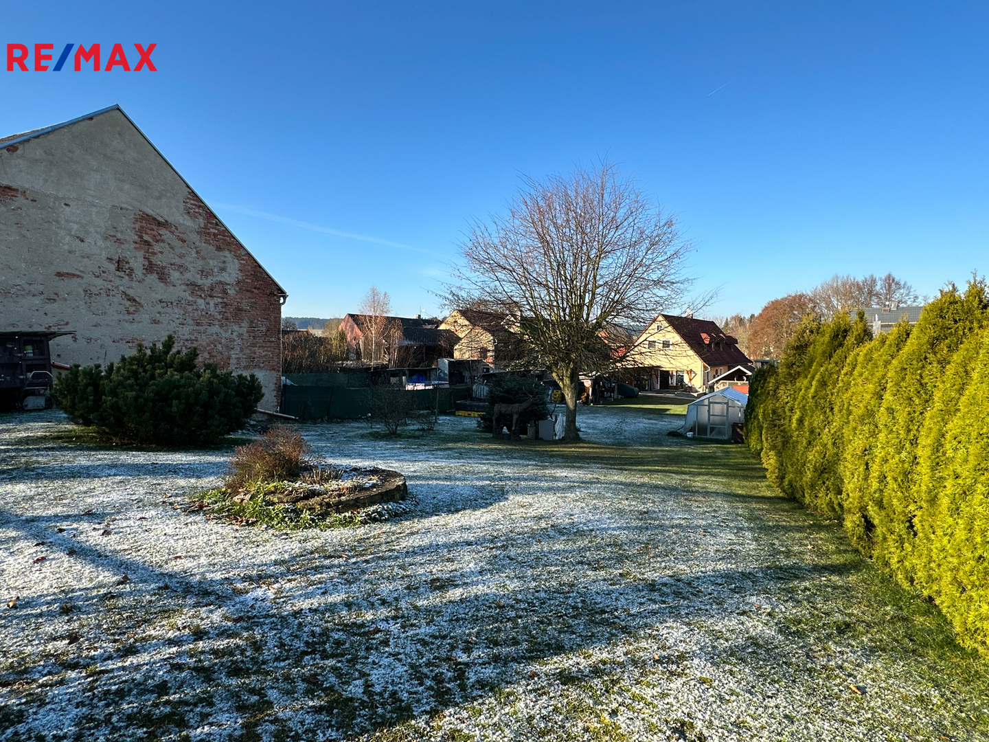 Dům se nachází na prostorném pozemku o celkové výměře 2356 m². Velká zahrada poskytuje mnoho možností využití od zahradních aktivit, prostoru pro děti či relaxaci.