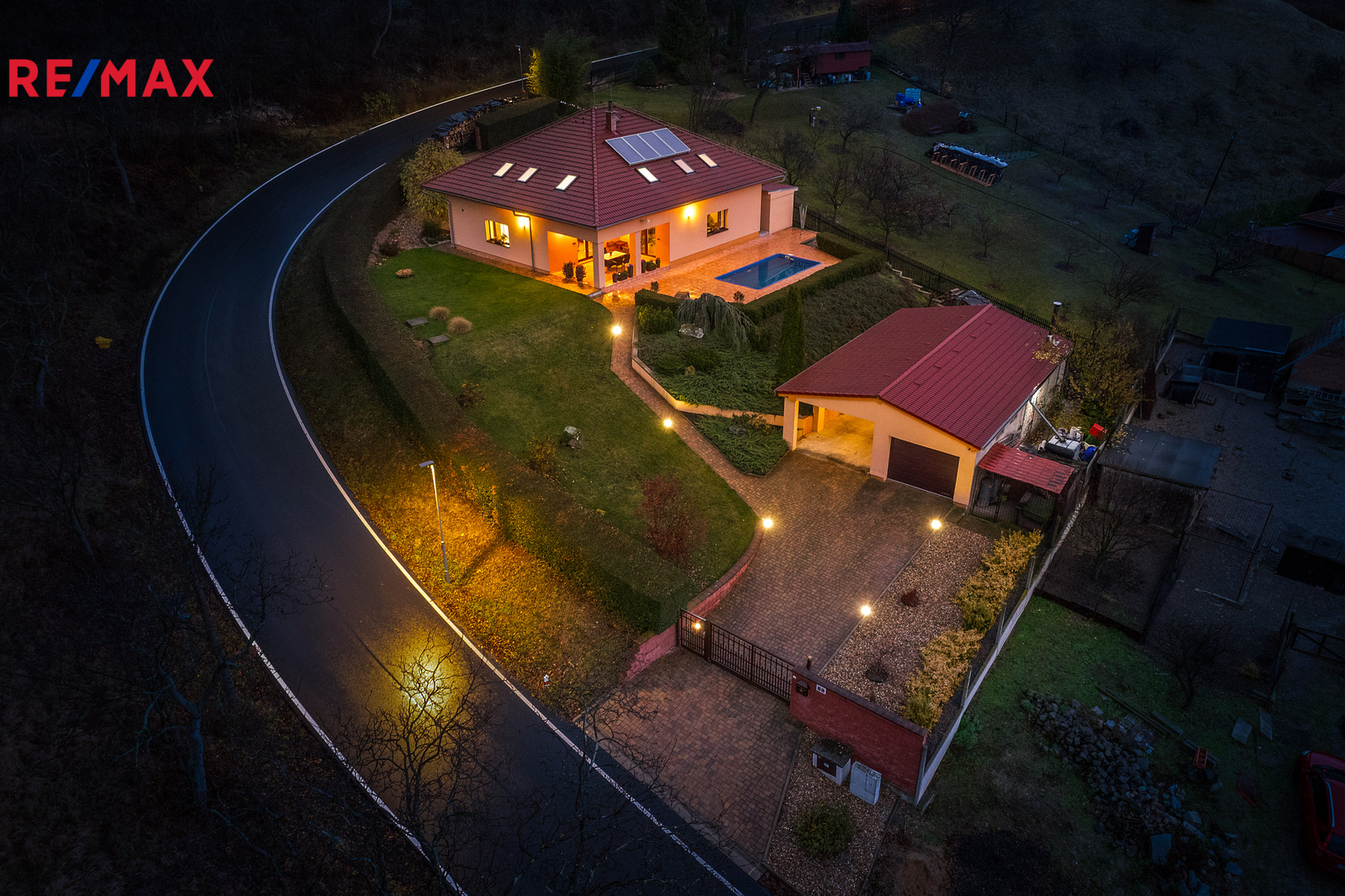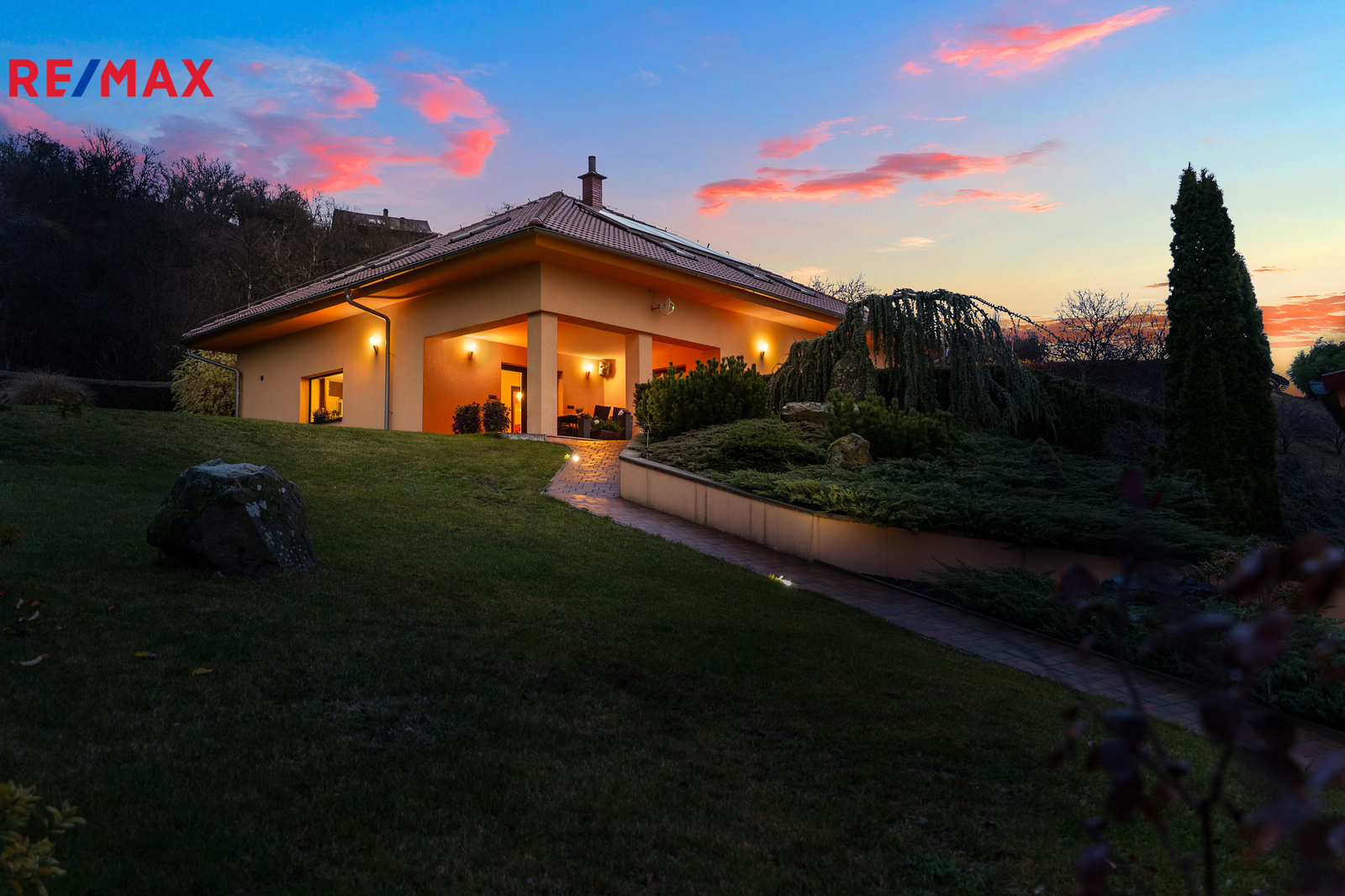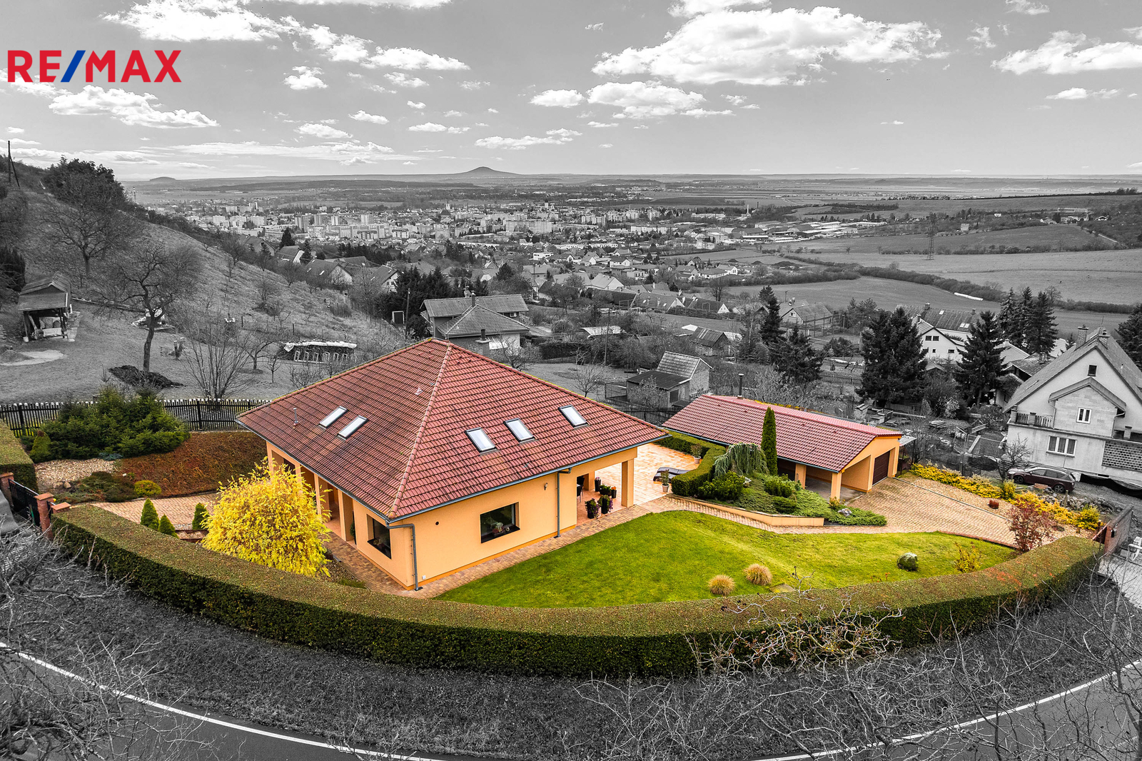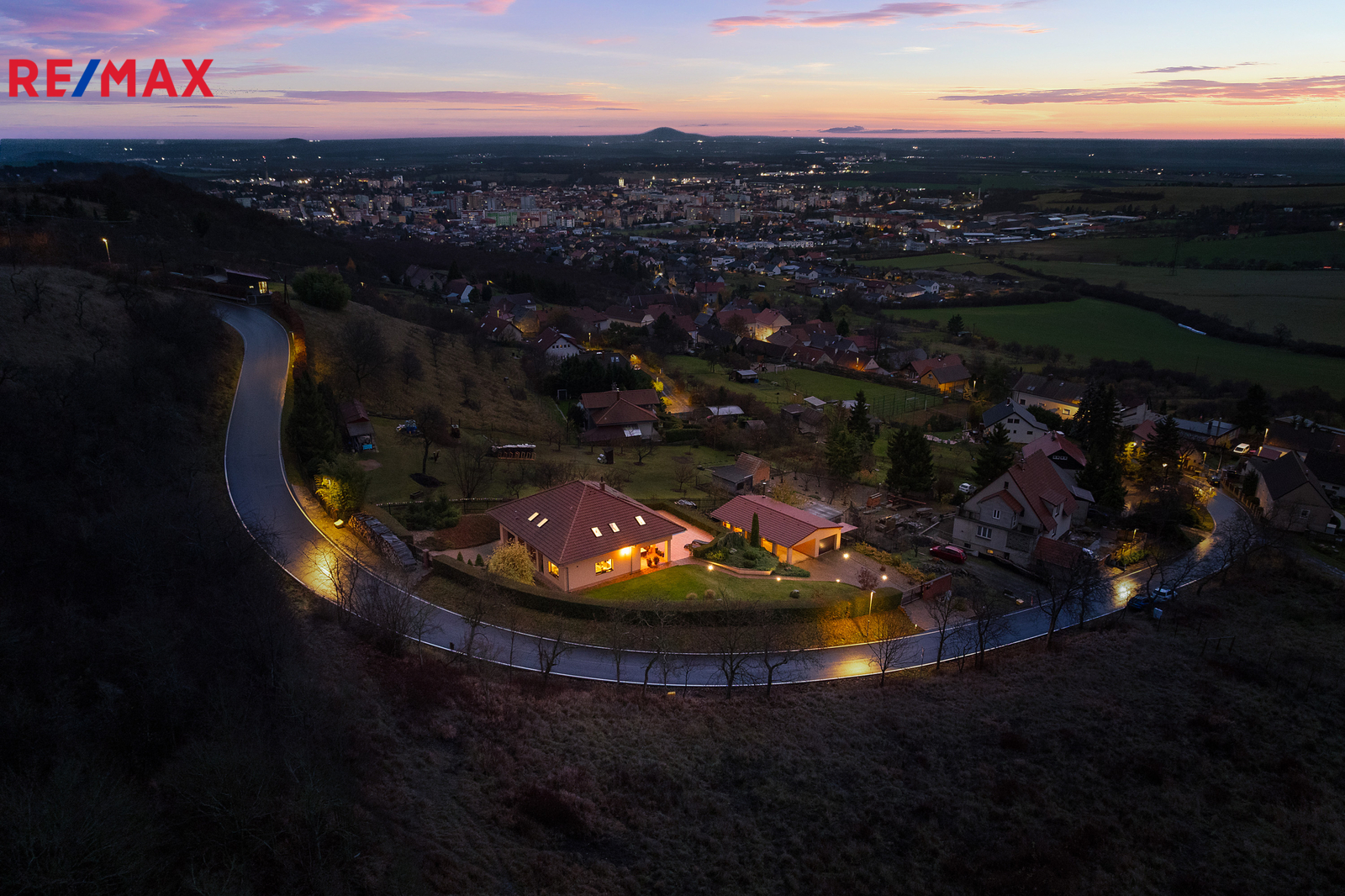 Dům byl postaven v roce 2018 a tak lze stále ještě hovořit o novostavbě. Umístěn je na svažitém pozemku o výměře 1501 m2 s otevřeným výhledem na Litoměřice a okolní krajinu. Zahrada domu nabízí značnou míru soukromí a terasa bude vaším odpočinkovým místem. Vstup či vjezd je zajištěn hlavní branou s nájezdem ke garáži. Vedlejší vstup na severní straně domu není využíván. Je zde umístěn sjezd do garáže, která je součástí domu nicméně svému účelu garáže pro osobní vůz neslouží.