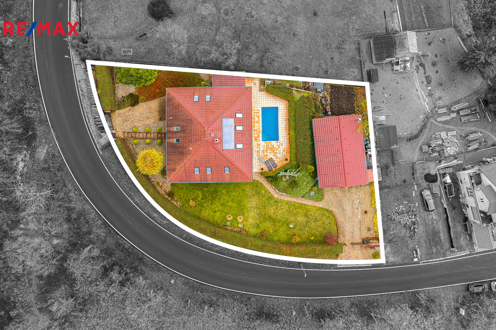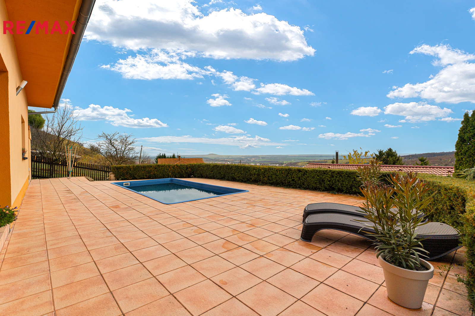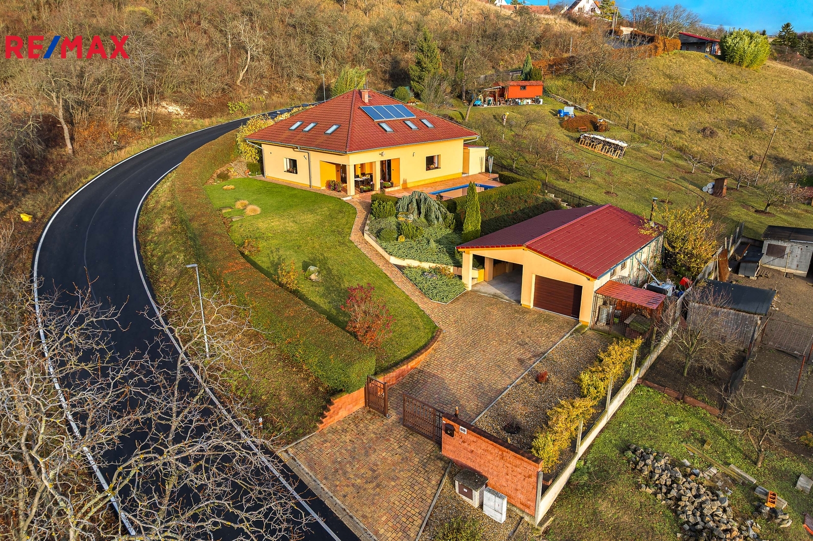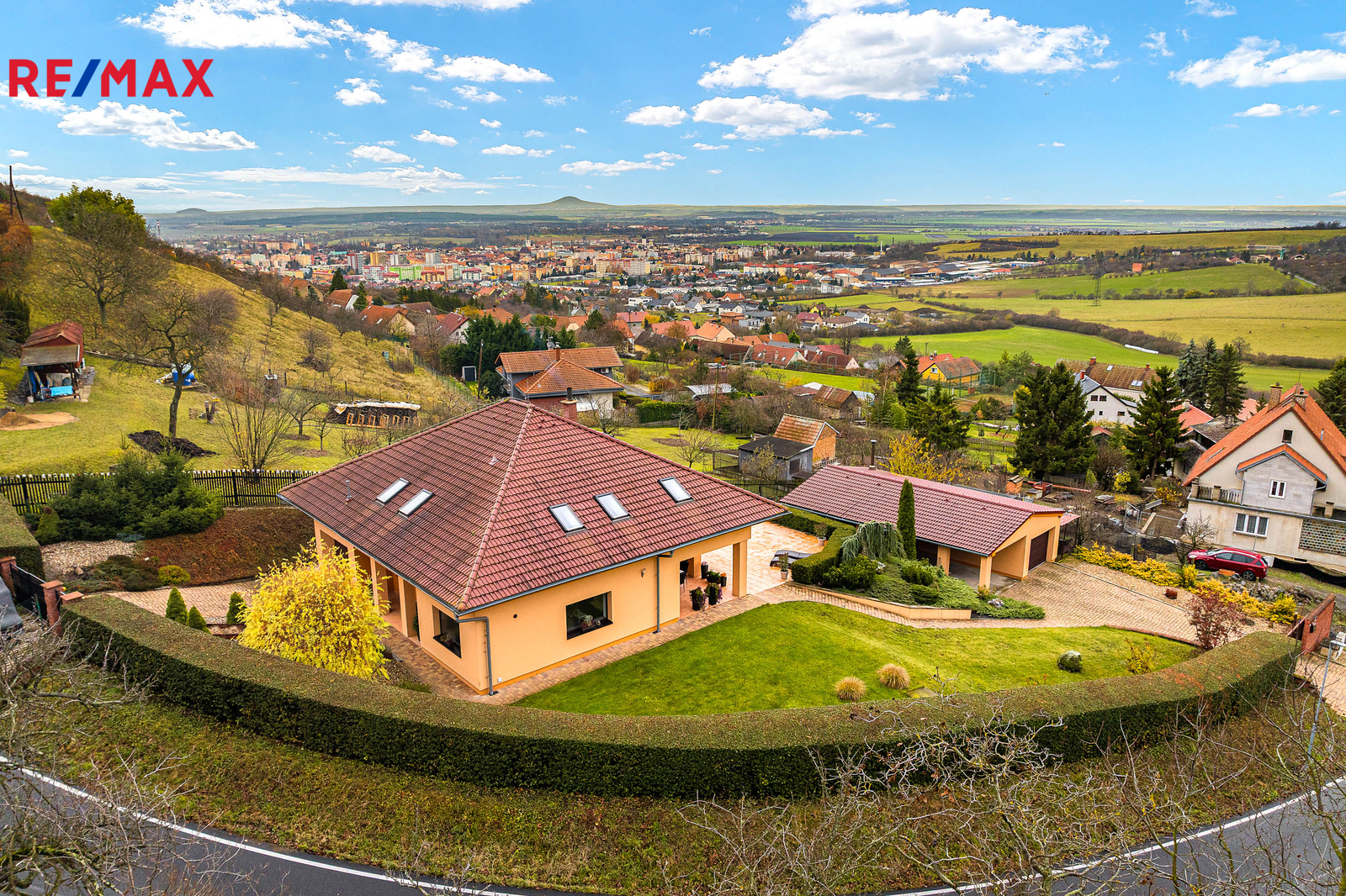 Dům byl postaven v roce 2018 a tak lze stále ještě hovořit o novostavbě. Umístěn je na svažitém pozemku o výměře 1501 m2 s otevřeným výhledem na Litoměřice a okolní krajinu. Zahrada domu nabízí značnou míru soukromí a terasa bude vaším odpočinkovým místem. Vstup či vjezd je zajištěn hlavní branou s nájezdem ke garáži. Vedlejší vstup na severní straně domu není využíván. Je zde umístěn sjezd do garáže, která je součástí domu nicméně svému účelu garáže pro osobní vůz neslouží.