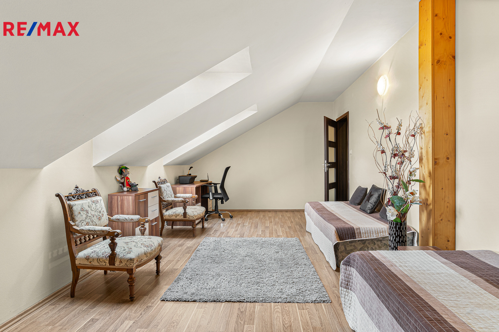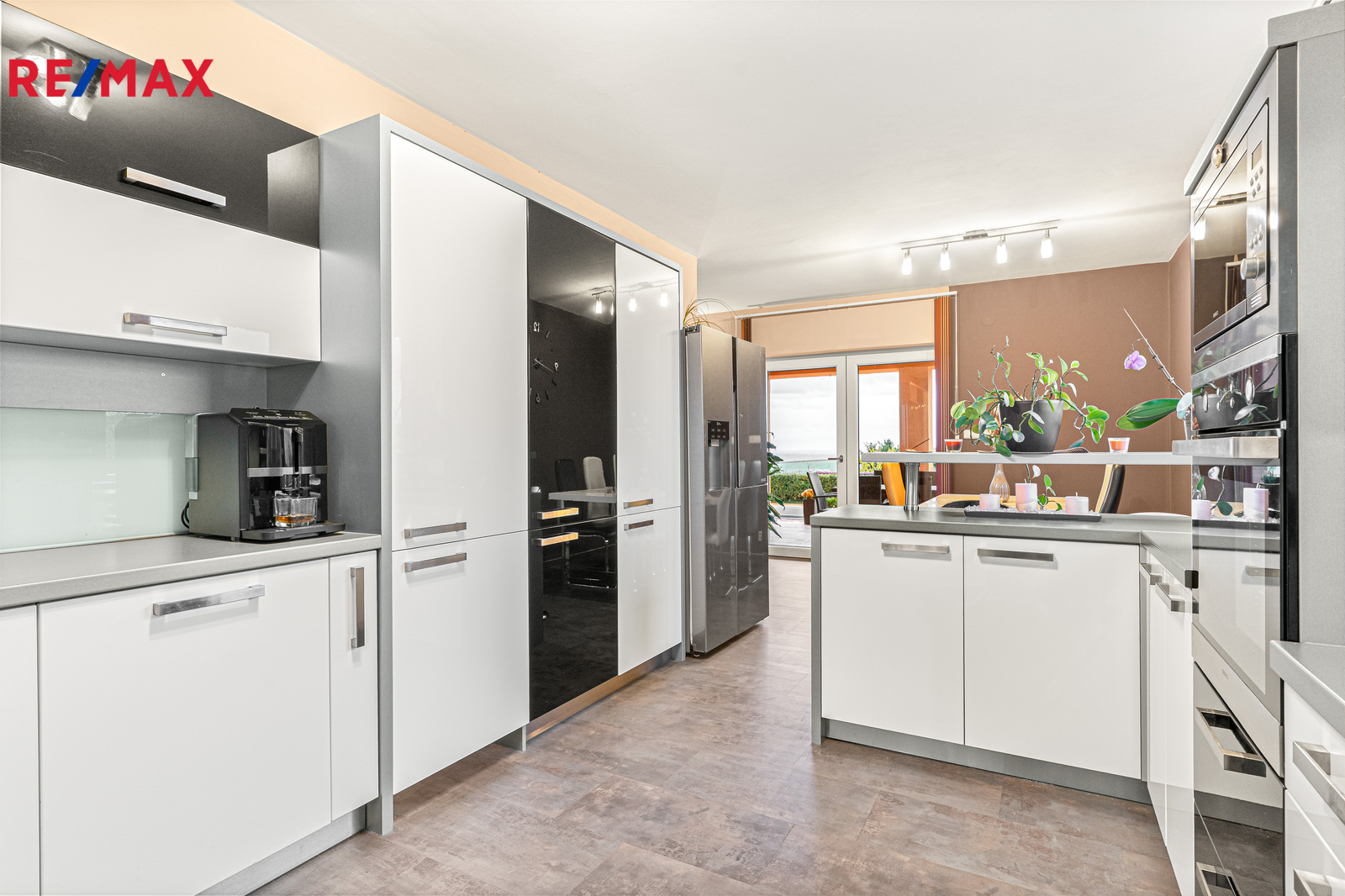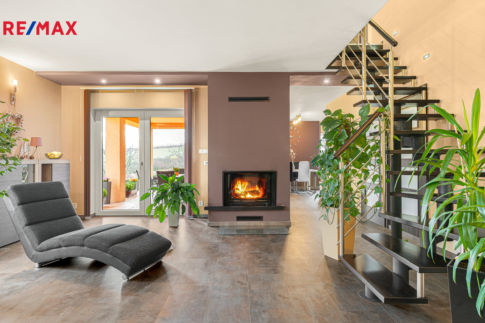Prostor a dispozice. Dům nabízí celkem 285 m2 v dispozici 5+1 se vstupní chodbou, technickou místností a již zmíněnou garáží. Umístit do ní můžete menší fitness, ateliér, řemeslnou dílnu nebo svoji kancelář. Dům nabízí dvě koupelny – menší v přízemí se sprchovým koutem a toaletou a druhou větší s dostatkem místa pro umístění třeba infrasauny. Kuchyňská linka je vyrobena na míru a prostor kuchyně je prodloužen zastřešenou částí venkovní terasy.