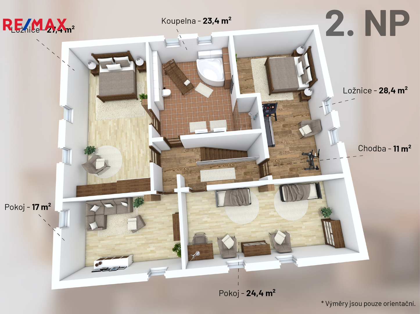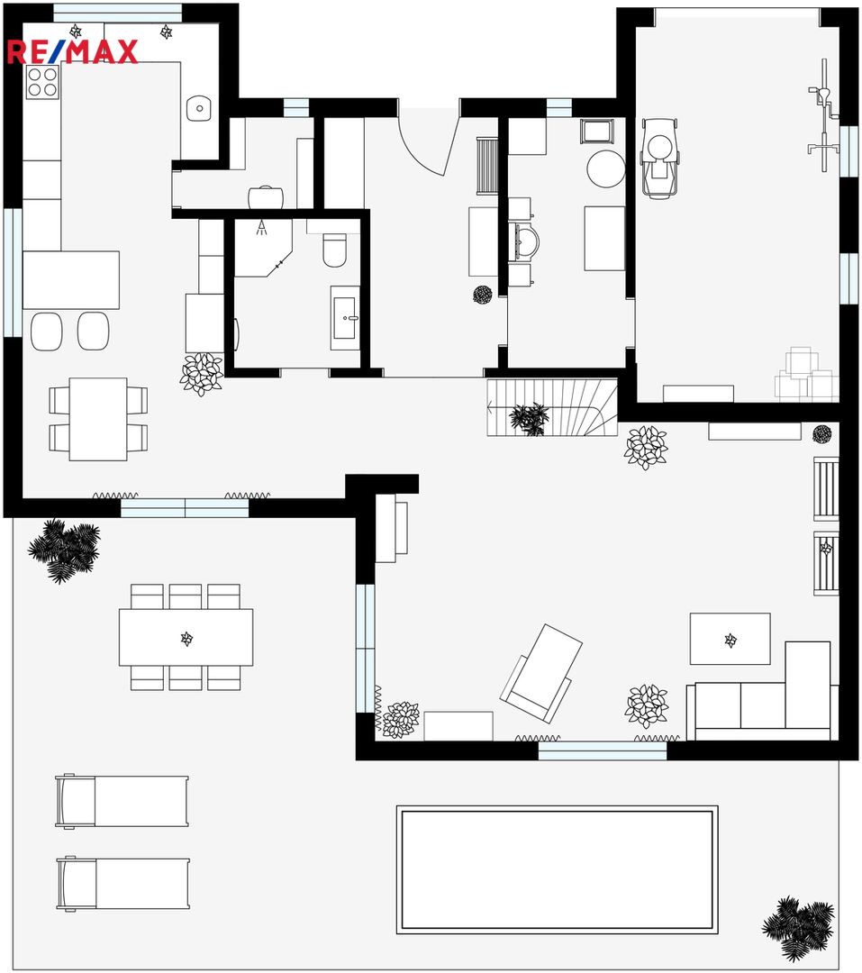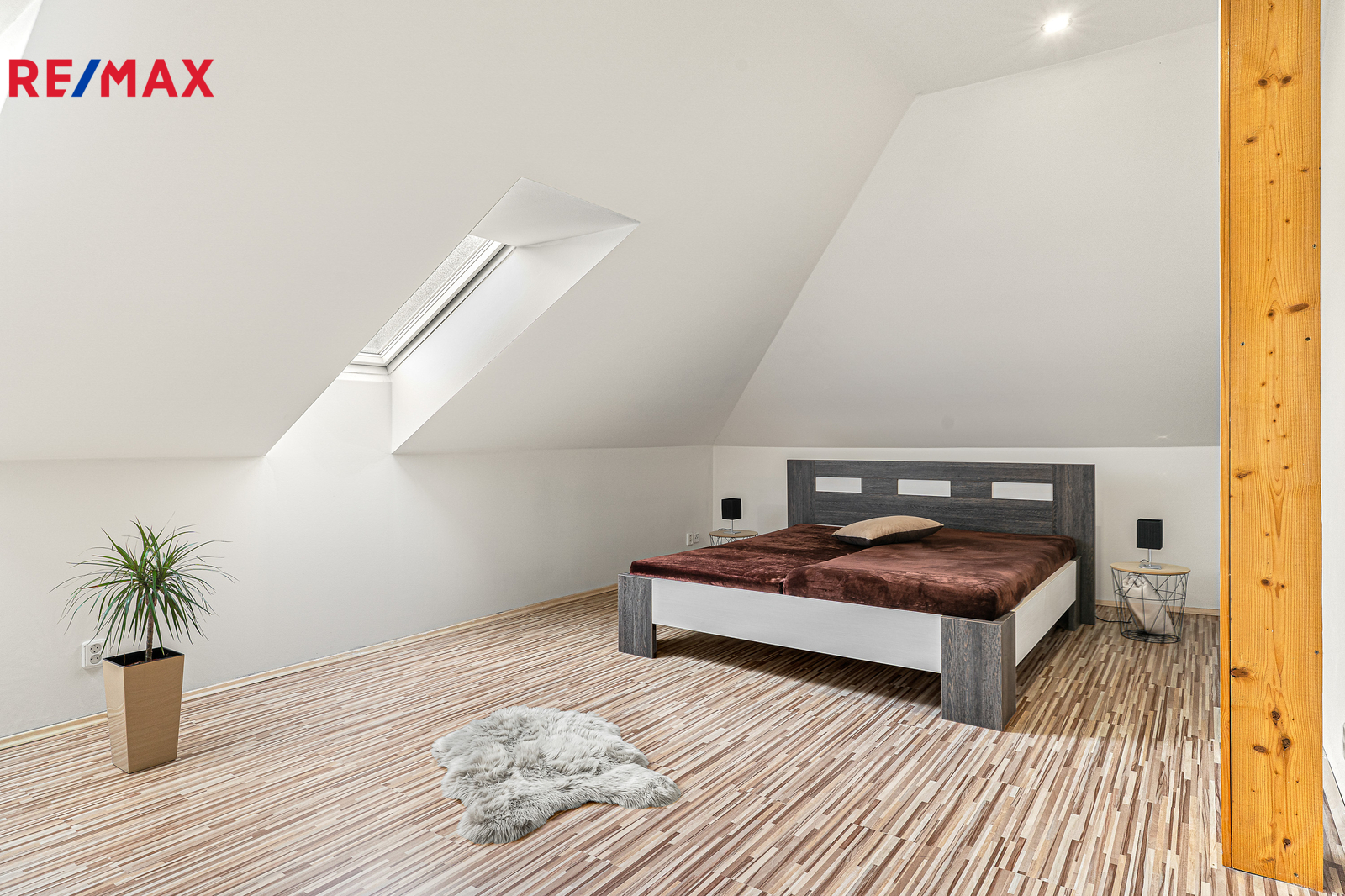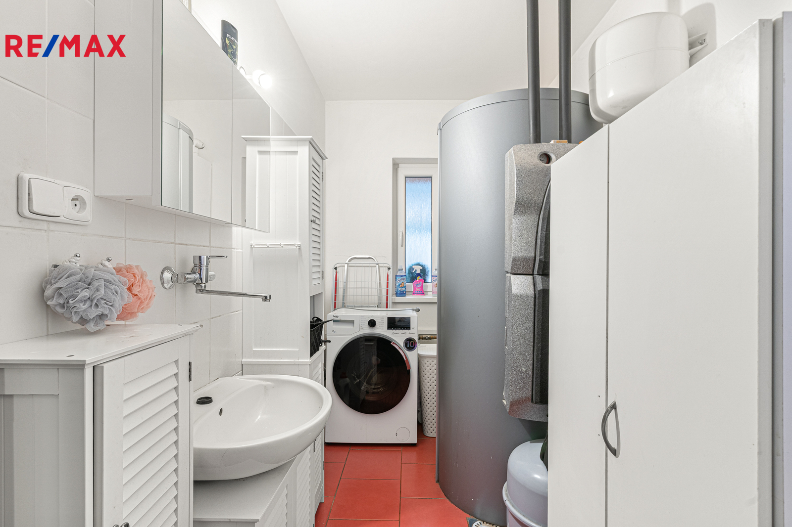 Prostor a dispozice. Dům nabízí celkem 285 m2 v dispozici 5+1 se vstupní chodbou, technickou místností a již zmíněnou garáží. Umístit do ní můžete menší fitness, ateliér, řemeslnou dílnu nebo svoji kancelář. Dům nabízí dvě koupelny – menší v přízemí se sprchovým koutem a toaletou a druhou větší s dostatkem místa pro umístění třeba infrasauny. Kuchyňská linka je vyrobena na míru a prostor kuchyně je prodloužen zastřešenou částí venkovní terasy.