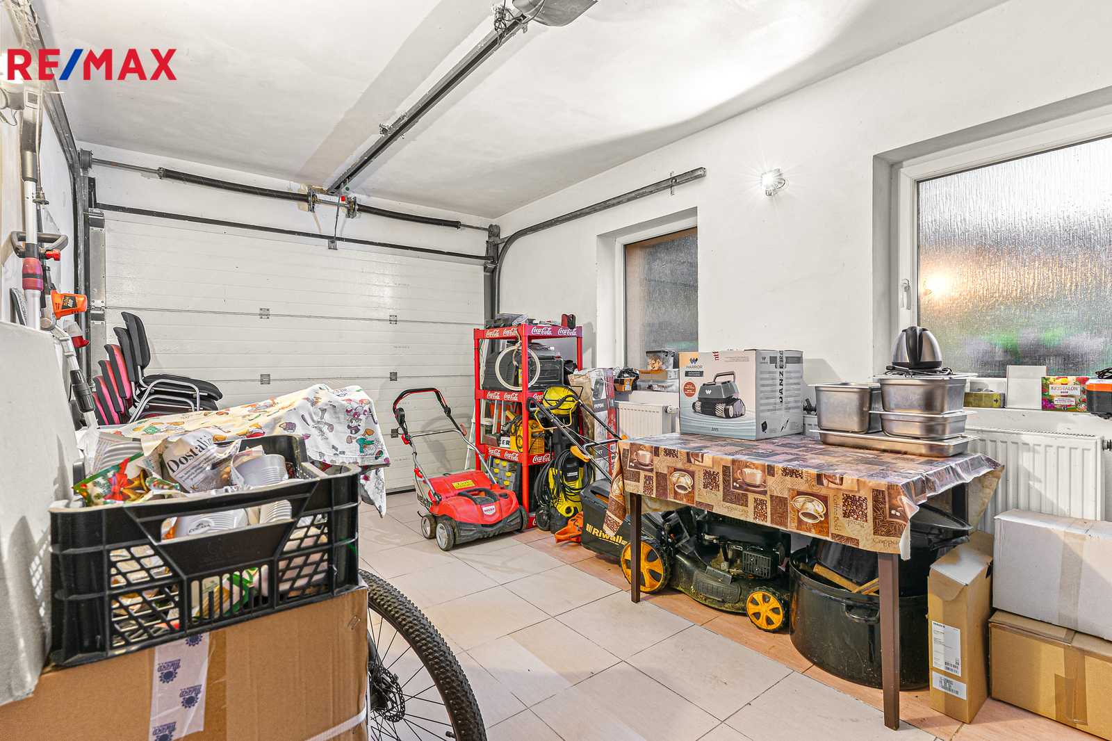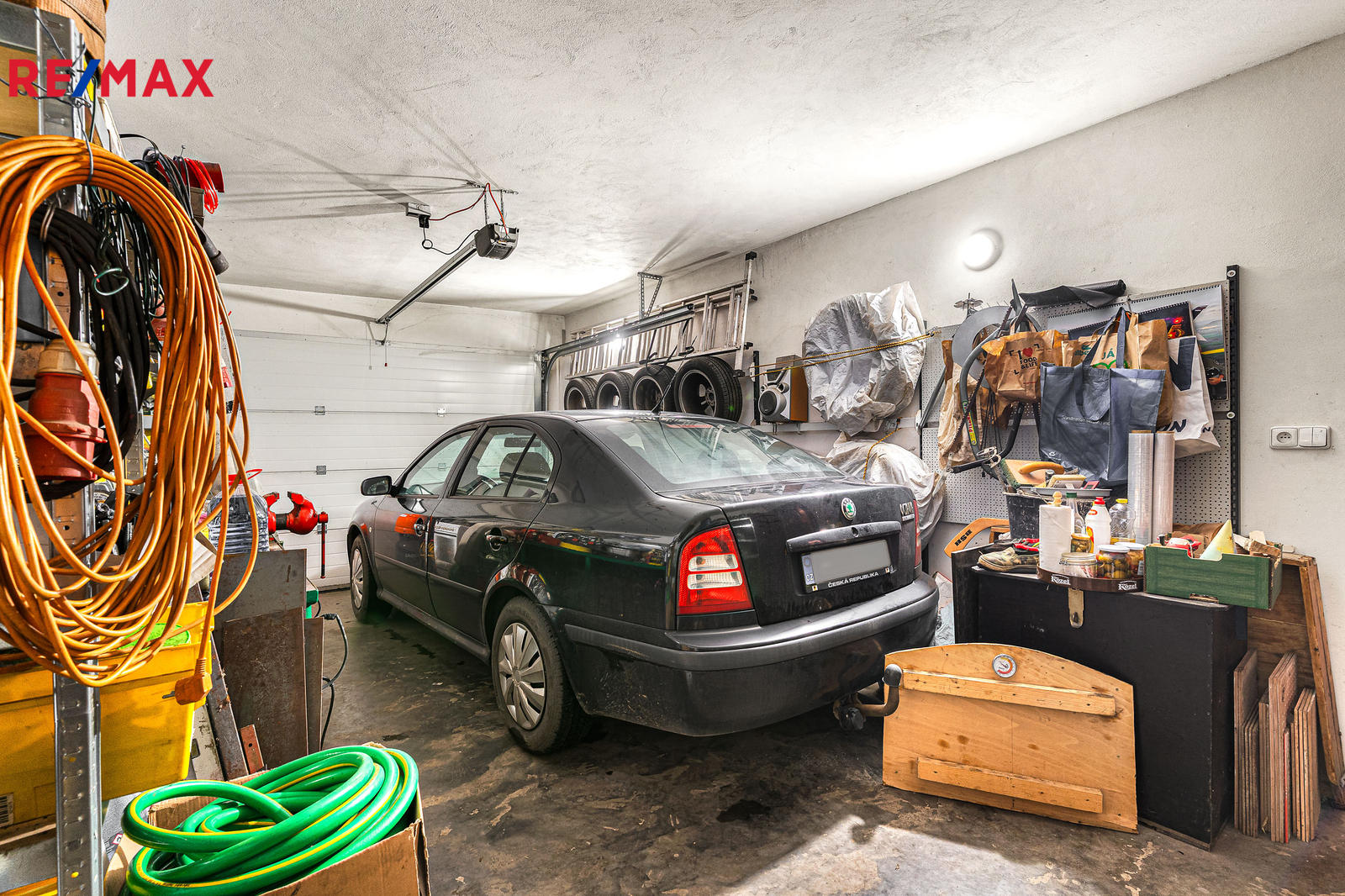 Vedlejší stavba garáže s krytým stáním je umístěna na spodní části pozemku. Prostranství před garáží je dlážděné s místem pro 3 osobní vozy. Vjezd ze silnice je osazen automatickou dálkově ovladatelnou branou. Součástí stavby garáže je venkovní letní kuchyň. Je zde udírna, pec na chleba, klasická kamna s litinovým tálem a troubou dále kuchyňská linka. Ideální místo pro vaše kulinářské speciality a posezení s přáteli. Tento prostor lze jednoduše zvětšit o venkovní zastřešenou část a získáte tak mnohem více místa pro vaši oslavu.
