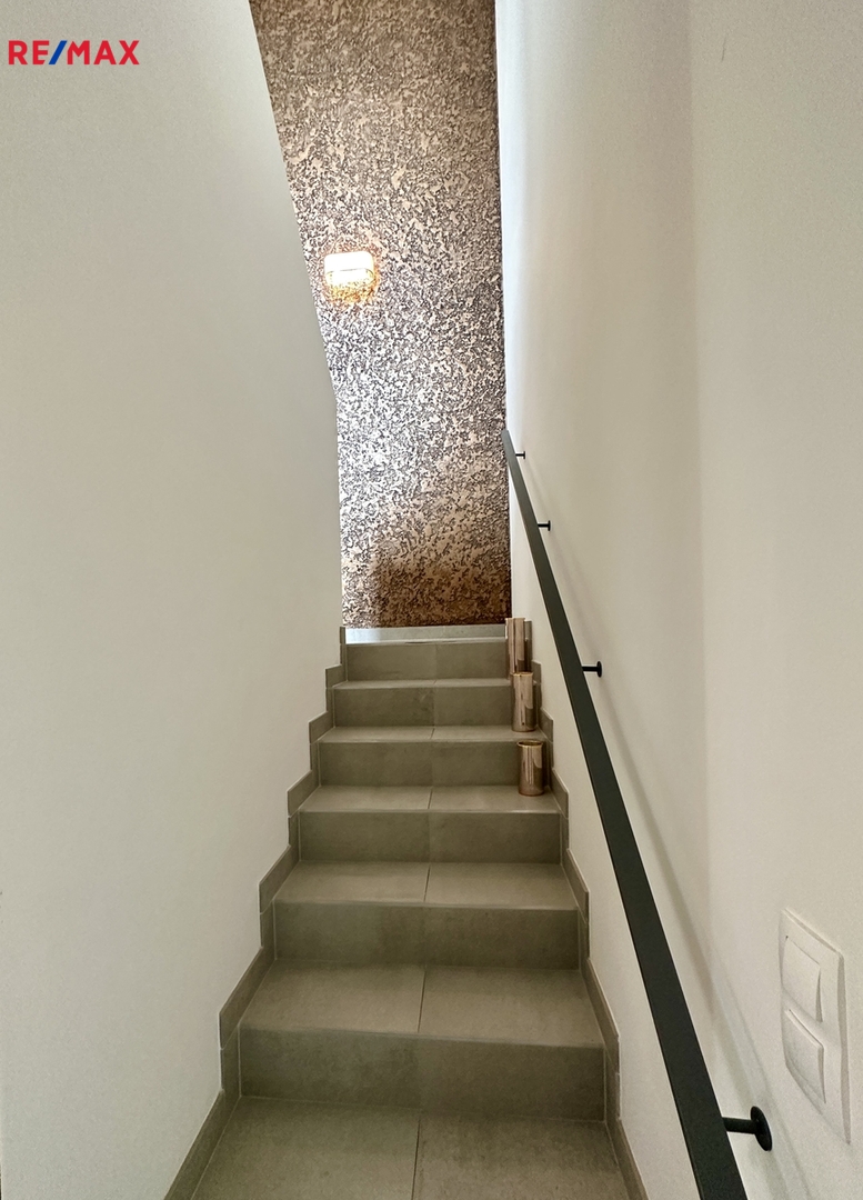 Jedinečnost nabídky spočívá v tom, že dům je umístěn uprostřed zástavby a v bytě a na terase si tak můžete užít, přesto že jste v centru, úplný klid.