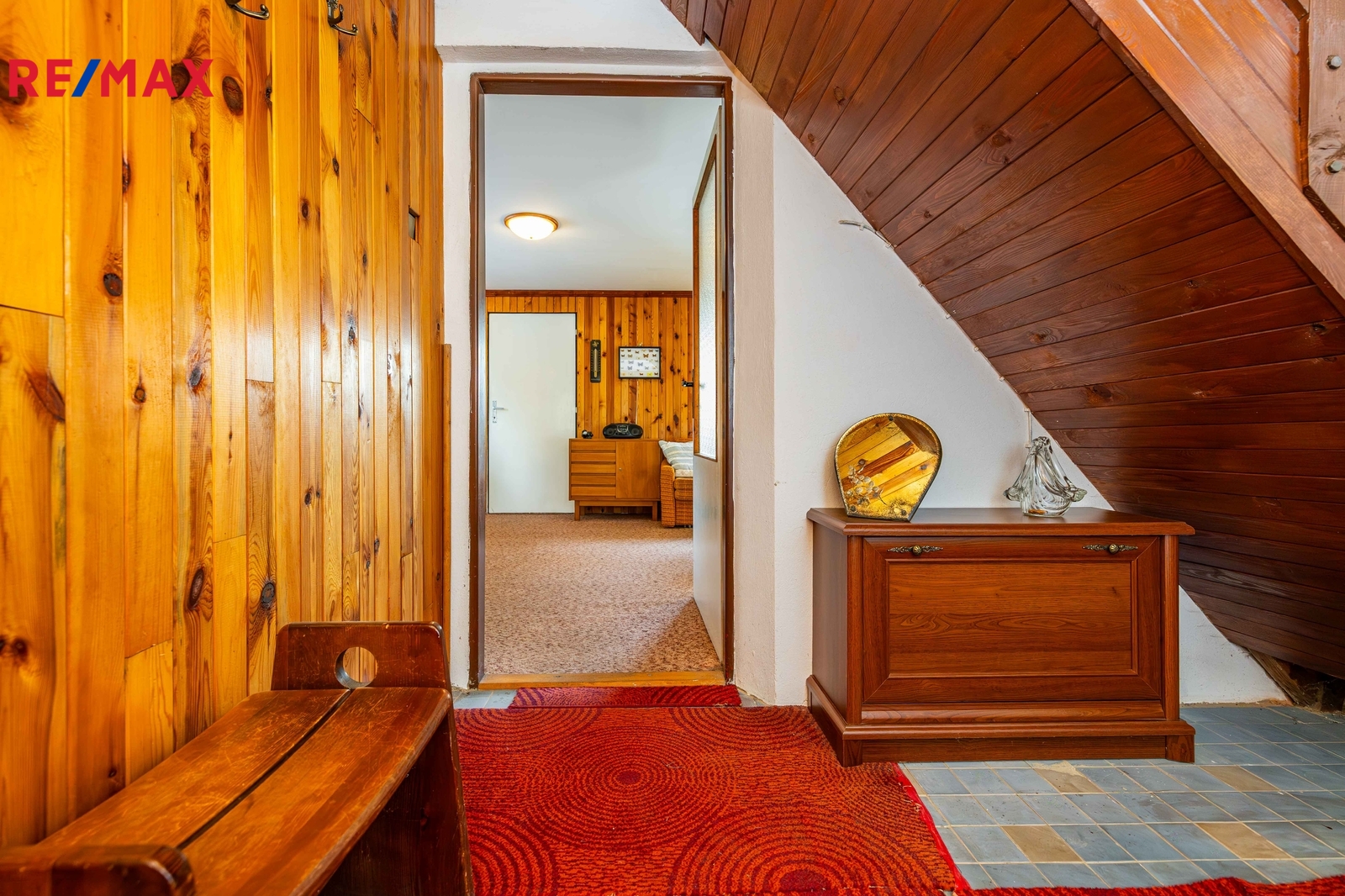Součástí domu je také prostorná půda, která poskytuje další úložné nebo případně využitelné prostory.