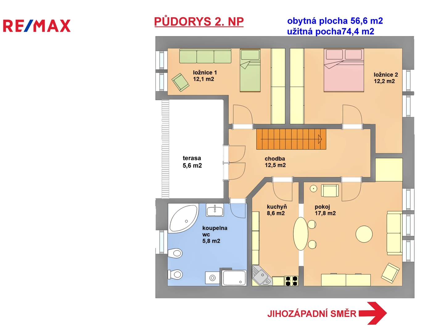 • dvě samostatné koupelny s WC, v prvním i ve druhém NP