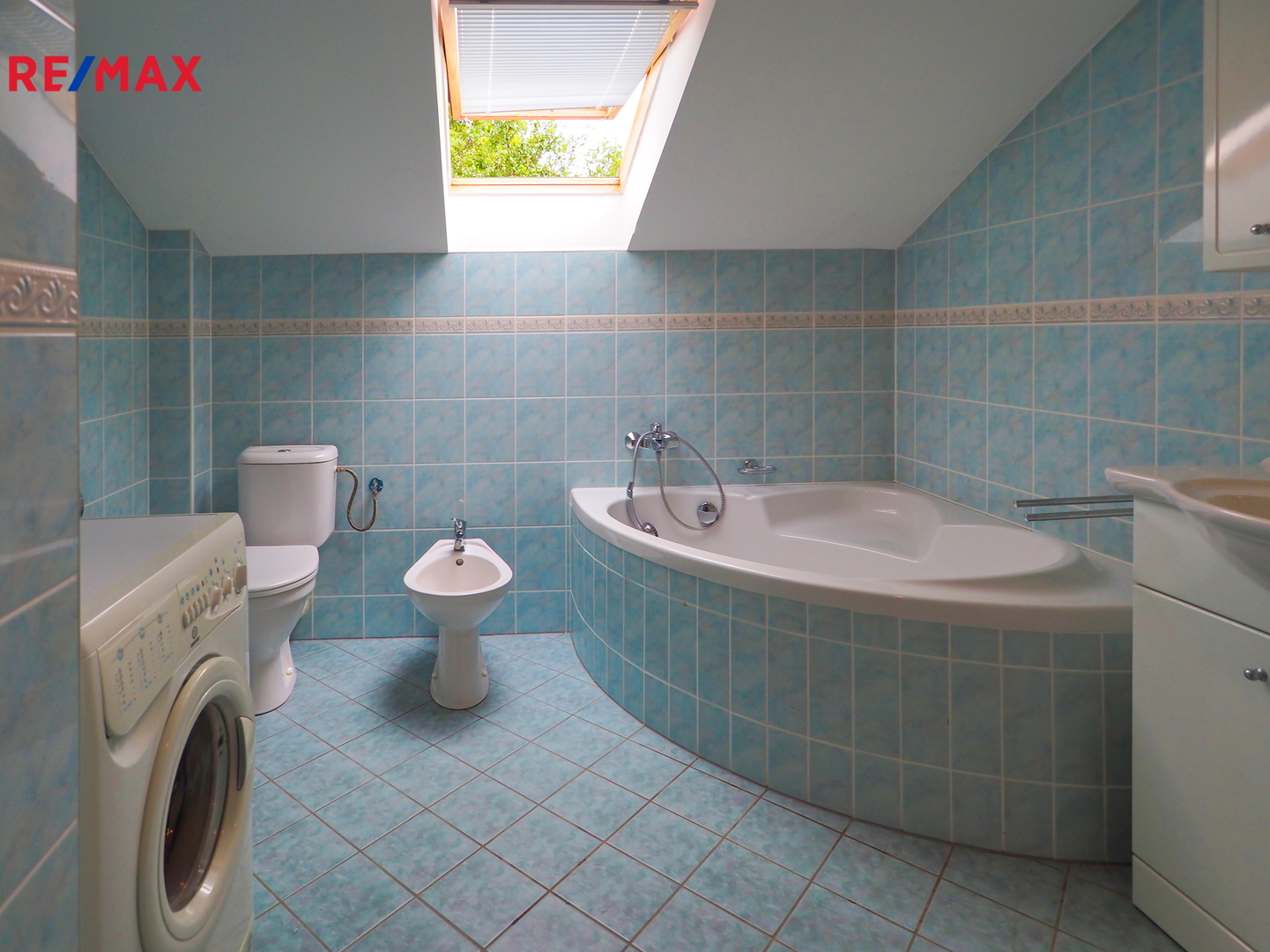 • prostorná koupelna v 2. NP: rohová vana, zděný sprchový kout, WC i bidet