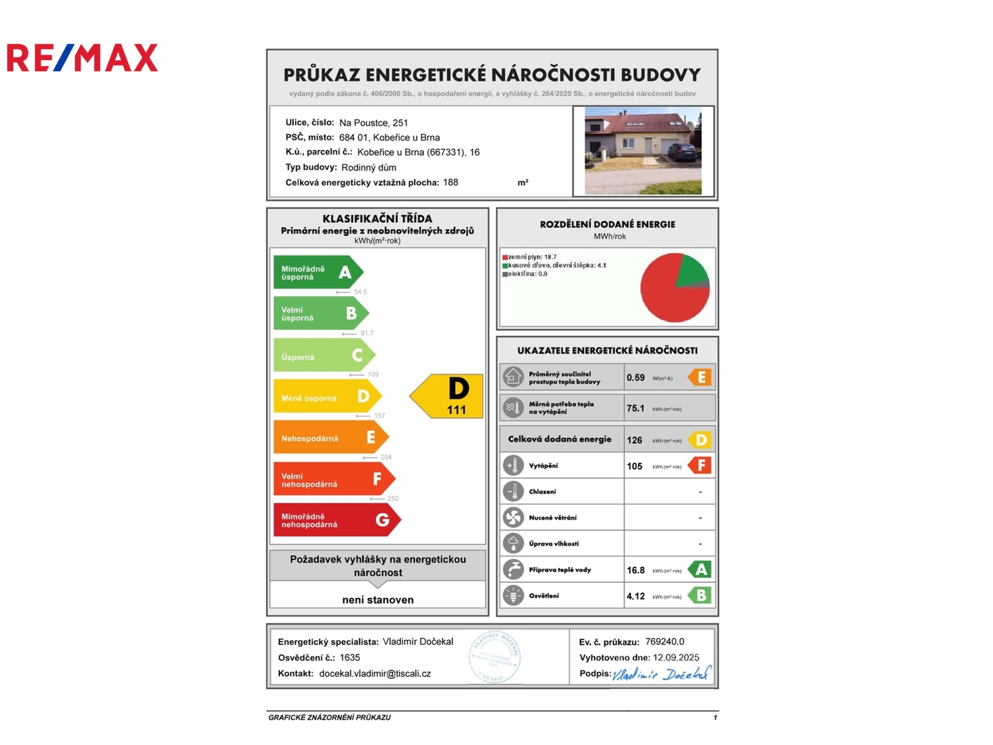 • PENB: ANO klasifikační tř. ,,D"