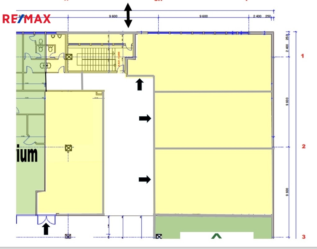 Prostor může být i v případě zájmu rozdělen na menší jednotky cca 80m2 - viz fotka půdorysu. Možnost pronajmutí jedné nebo více jednotek. Bližší info v RK.