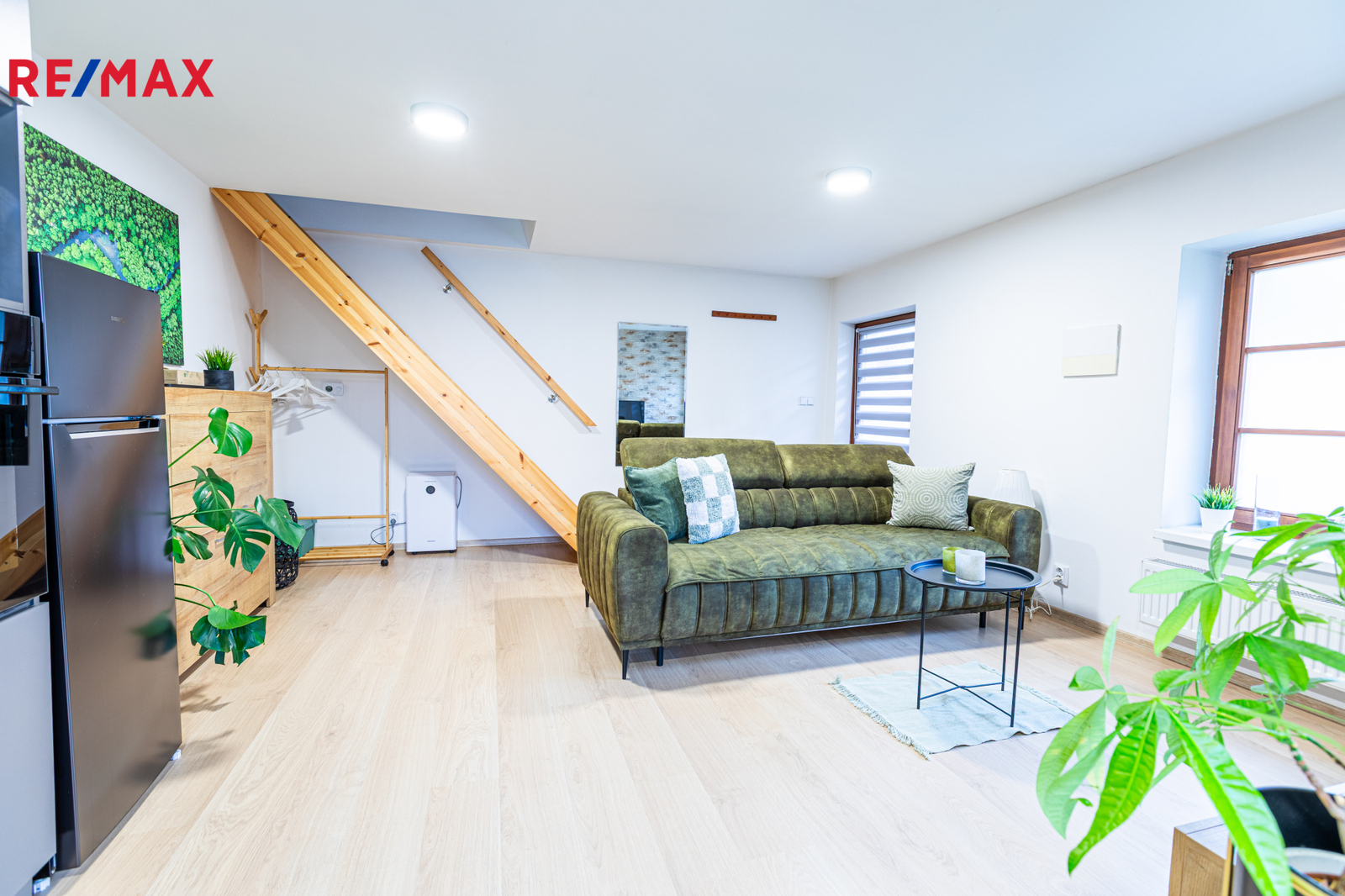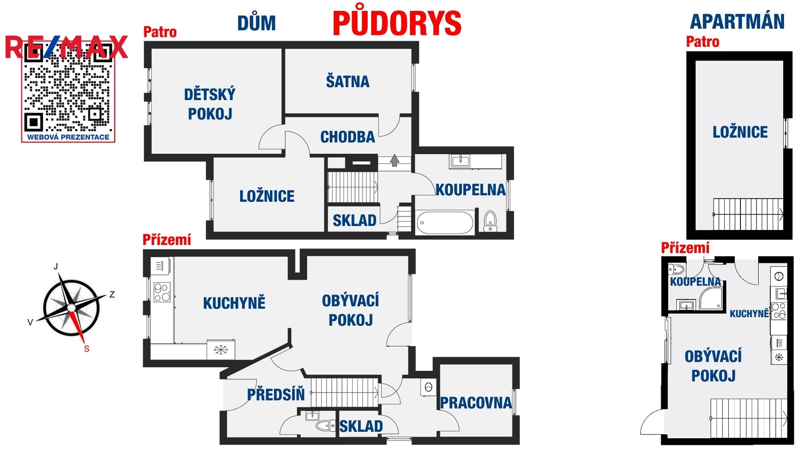 Součástí přízemí je také menší sklad u vstupu do sklepa a pracovna (6 m²) situovaná v klidnější zadní části domu.