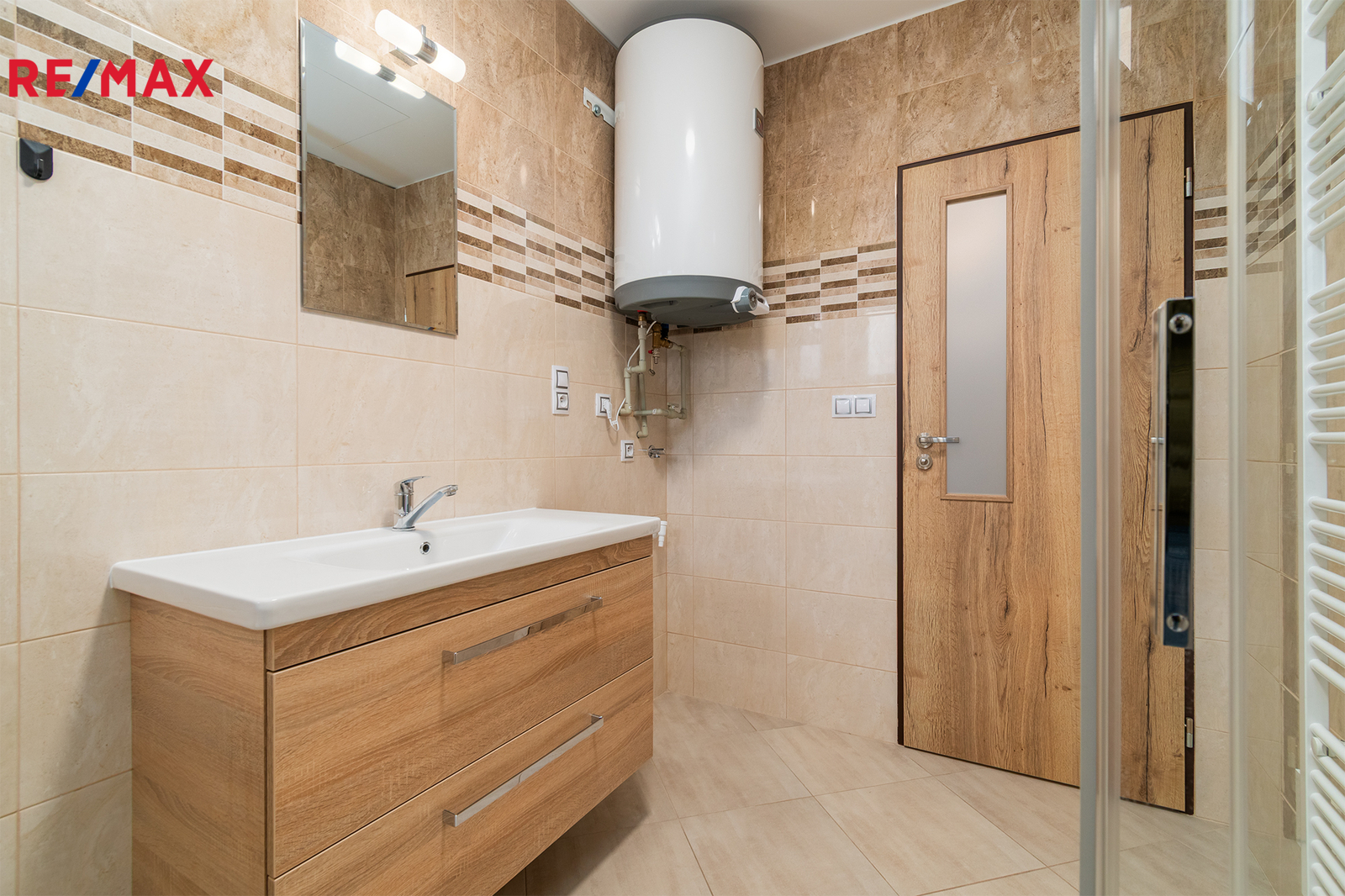 Vytápění zajišťuje plynový kotel a teplou vodu elektrický bojler.