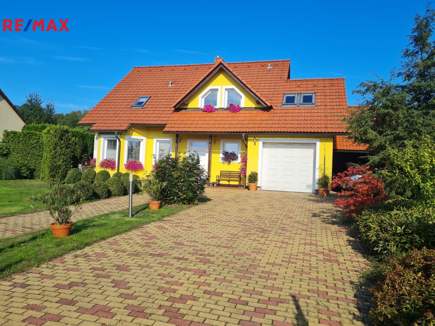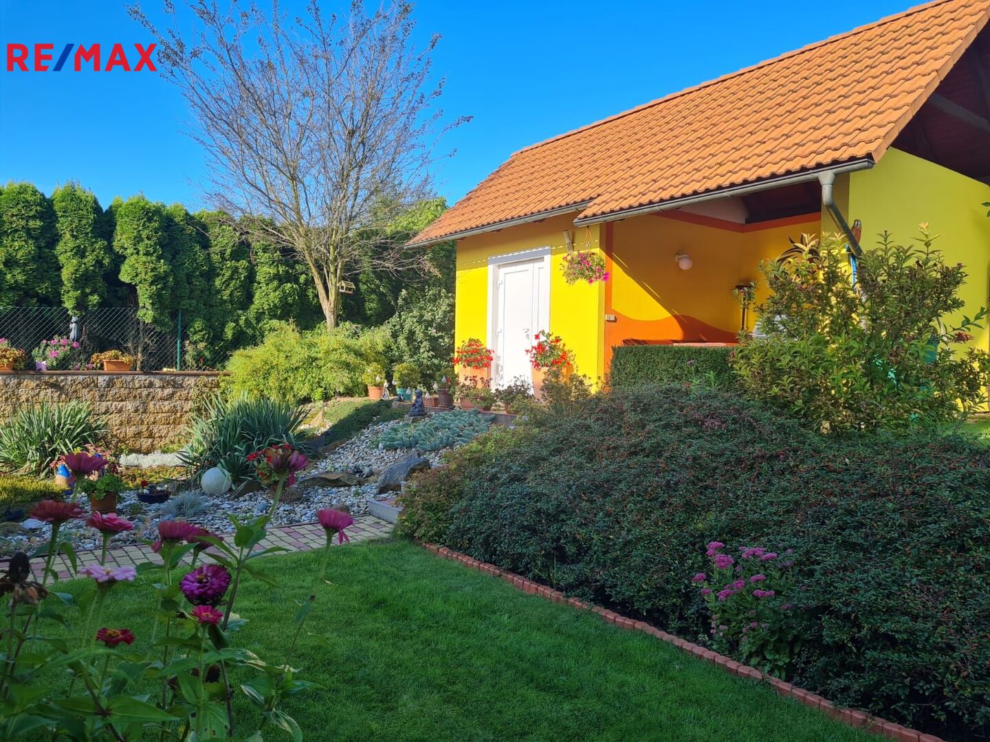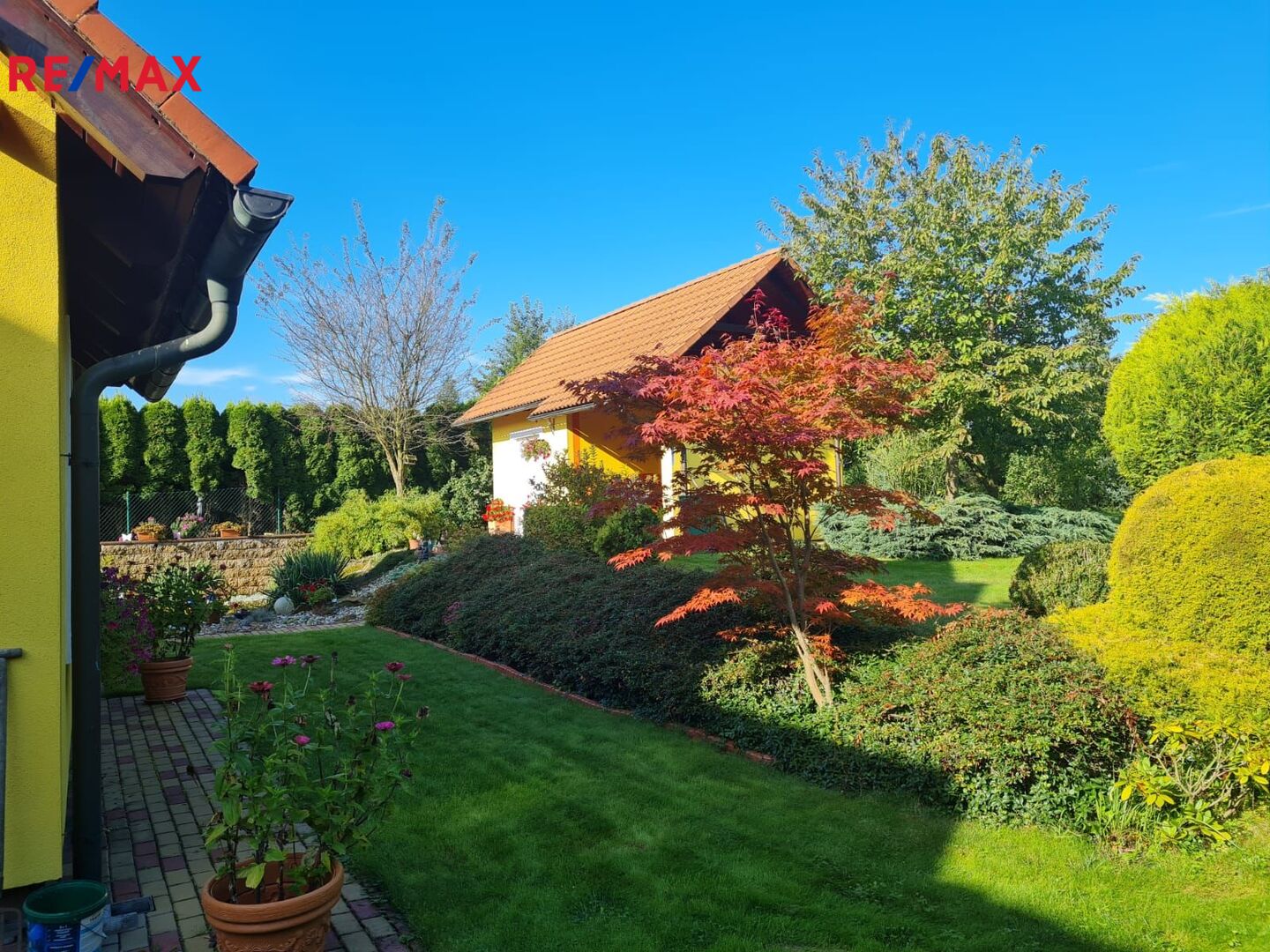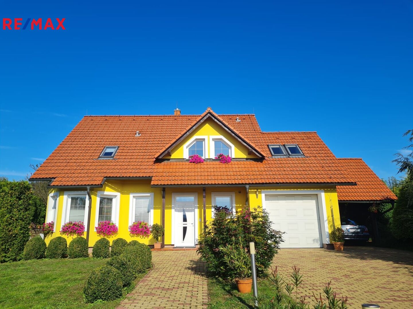 V přízemí se nachází předsíň, prostorná chodba se vstupem do obývacího pokoje s kuchyní a jídelním koutem, dále do pracovny, koupelny s WC a sprchovým koutem. Z obývacího pokoje je možné vystoupit na terasu s posezením. Dřevěným schodištěm se dostaneme do patra kde najdeme velmi hezkou podkrovní ložnici a pokoj, se společným balkónem. Další pokoj je bez balkónu. Pohodlí obývaného patra zajišťuje druhá koupelna s vanou a WC. Přízemí je vytápěno podlahovým topením prostřednictvím plynového kotle. V patře elektrické podlahové vytápění pouze v koupelně. Dalším zdrojem vytápění je krb, umístěn v obývacím pokoji, s rozvody do všech místností. Dům je napojen na obecní vodu a kanalizaci. Garáž s elektrickými vraty a kryté stání vedle domu, umožňuje parkování dvou aut. V přední části zahrady je umístěn zahradní domek s místností na zahradní nářadí a posezením, který umožňuje pohled do upravené zahrady. Prostor před domem je esteticky upraven vysazenými keři a rostlinami a udržovaným trávníkem. Zámková dlažba zpevňuje všechny příjezdové a pochozí plochy. Ráz domu dotváří vkusné oplocení s elektrickou branou.