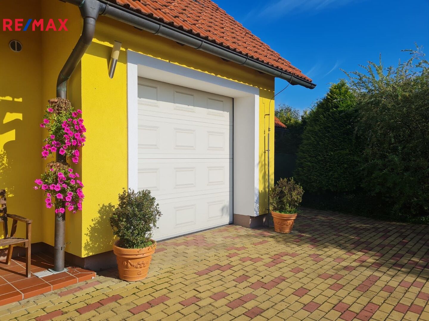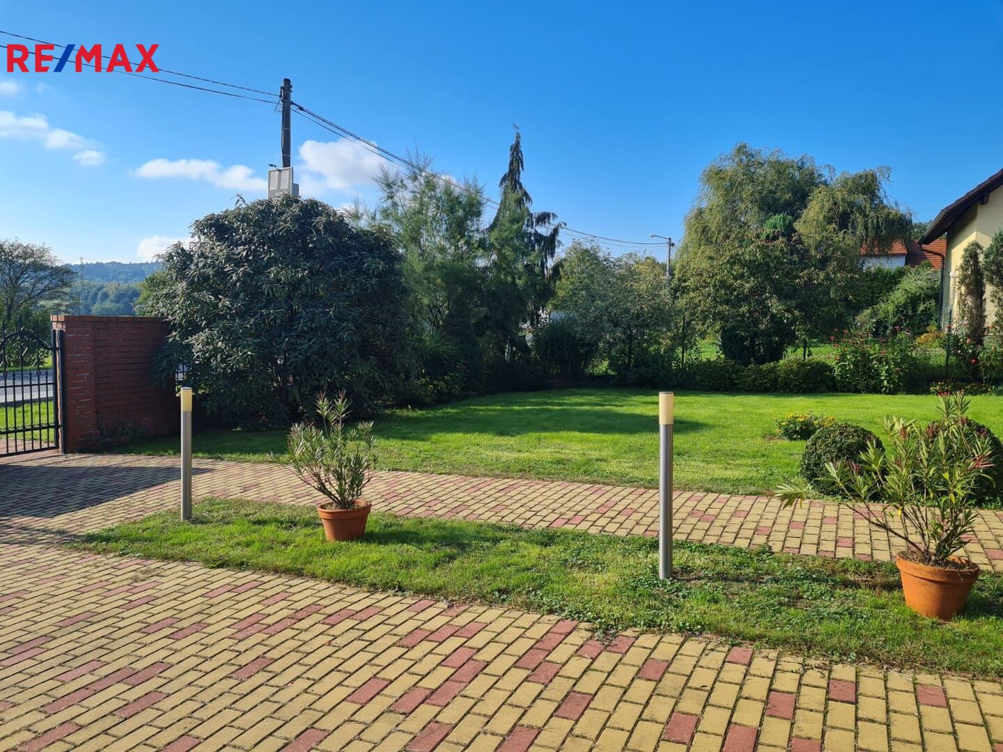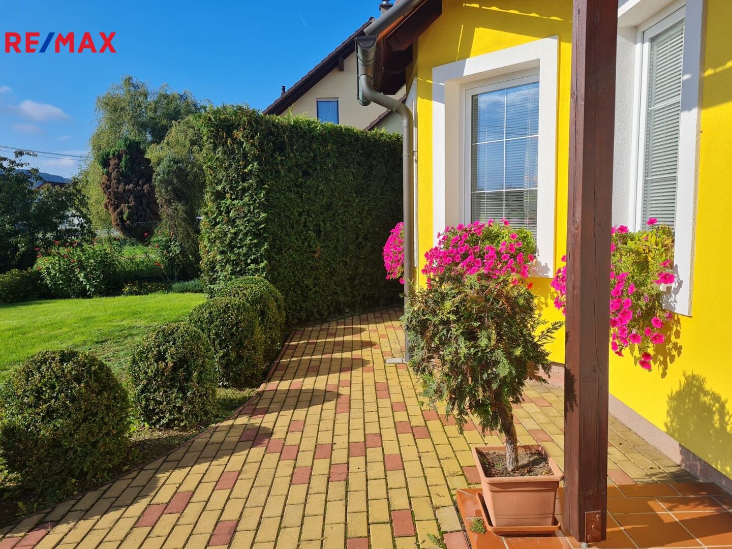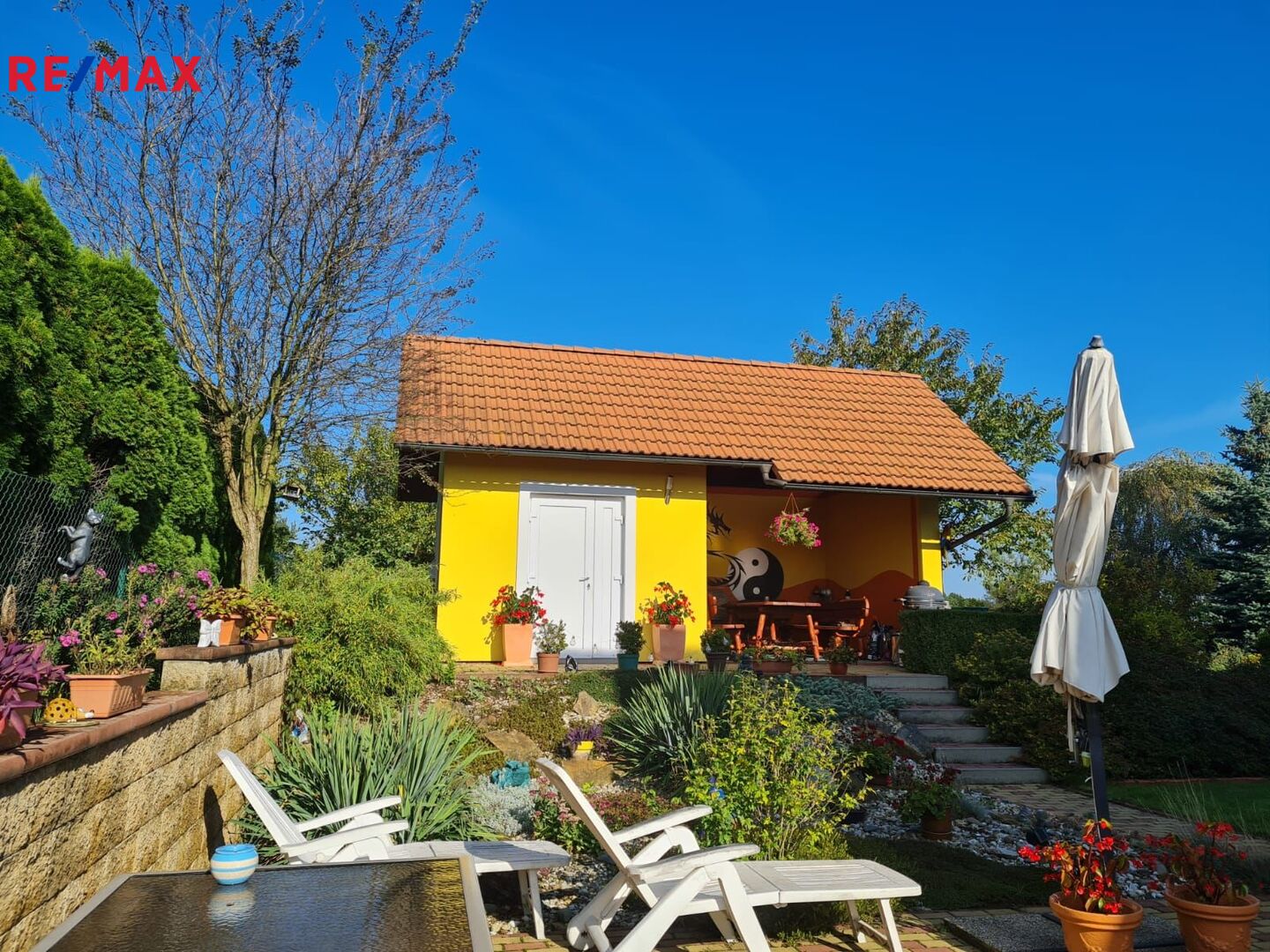 V přízemí se nachází předsíň, prostorná chodba se vstupem do obývacího pokoje s kuchyní a jídelním koutem, dále do pracovny, koupelny s WC a sprchovým koutem. Z obývacího pokoje je možné vystoupit na terasu s posezením. Dřevěným schodištěm se dostaneme do patra kde najdeme velmi hezkou podkrovní ložnici a pokoj, se společným balkónem. Další pokoj je bez balkónu. Pohodlí obývaného patra zajišťuje druhá koupelna s vanou a WC. Přízemí je vytápěno podlahovým topením prostřednictvím plynového kotle. V patře elektrické podlahové vytápění pouze v koupelně. Dalším zdrojem vytápění je krb, umístěn v obývacím pokoji, s rozvody do všech místností. Dům je napojen na obecní vodu a kanalizaci. Garáž s elektrickými vraty a kryté stání vedle domu, umožňuje parkování dvou aut. V přední části zahrady je umístěn zahradní domek s místností na zahradní nářadí a posezením, který umožňuje pohled do upravené zahrady. Prostor před domem je esteticky upraven vysazenými keři a rostlinami a udržovaným trávníkem. Zámková dlažba zpevňuje všechny příjezdové a pochozí plochy. Ráz domu dotváří vkusné oplocení s elektrickou branou.