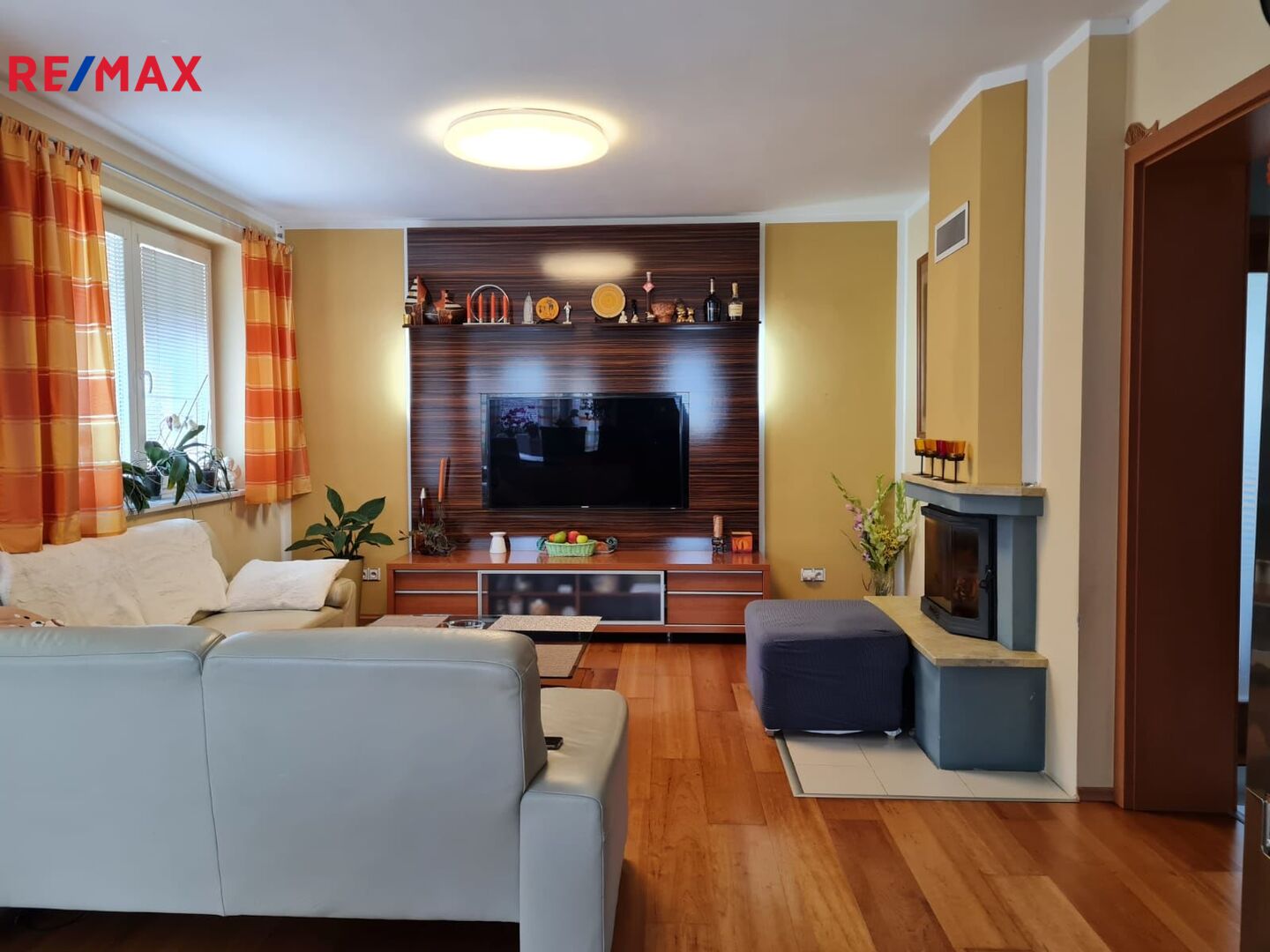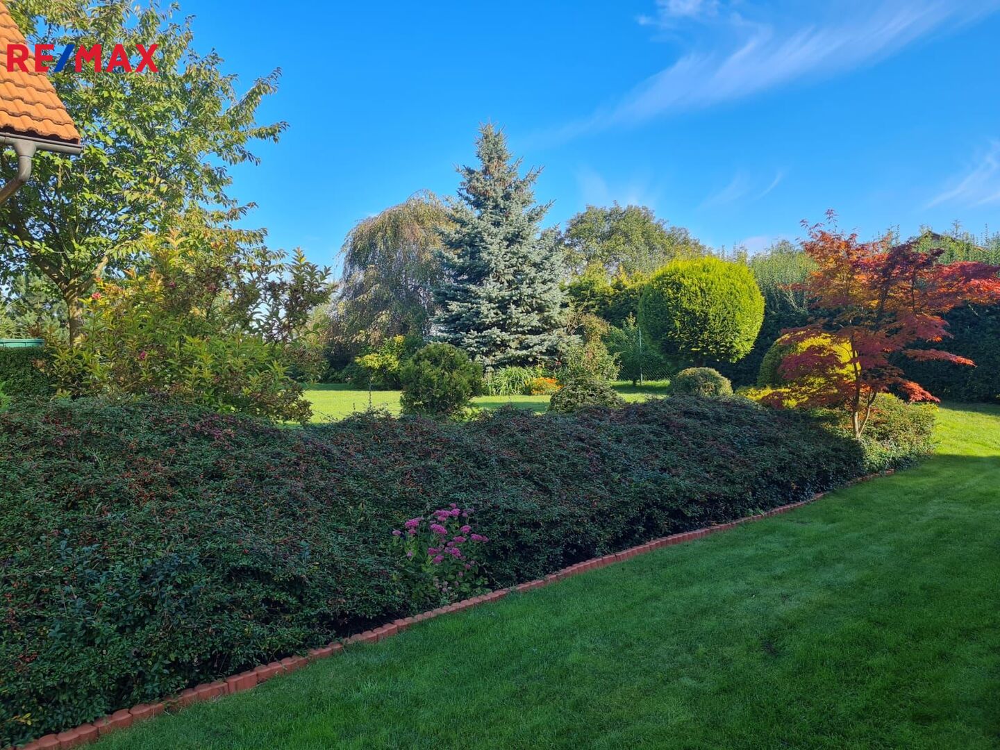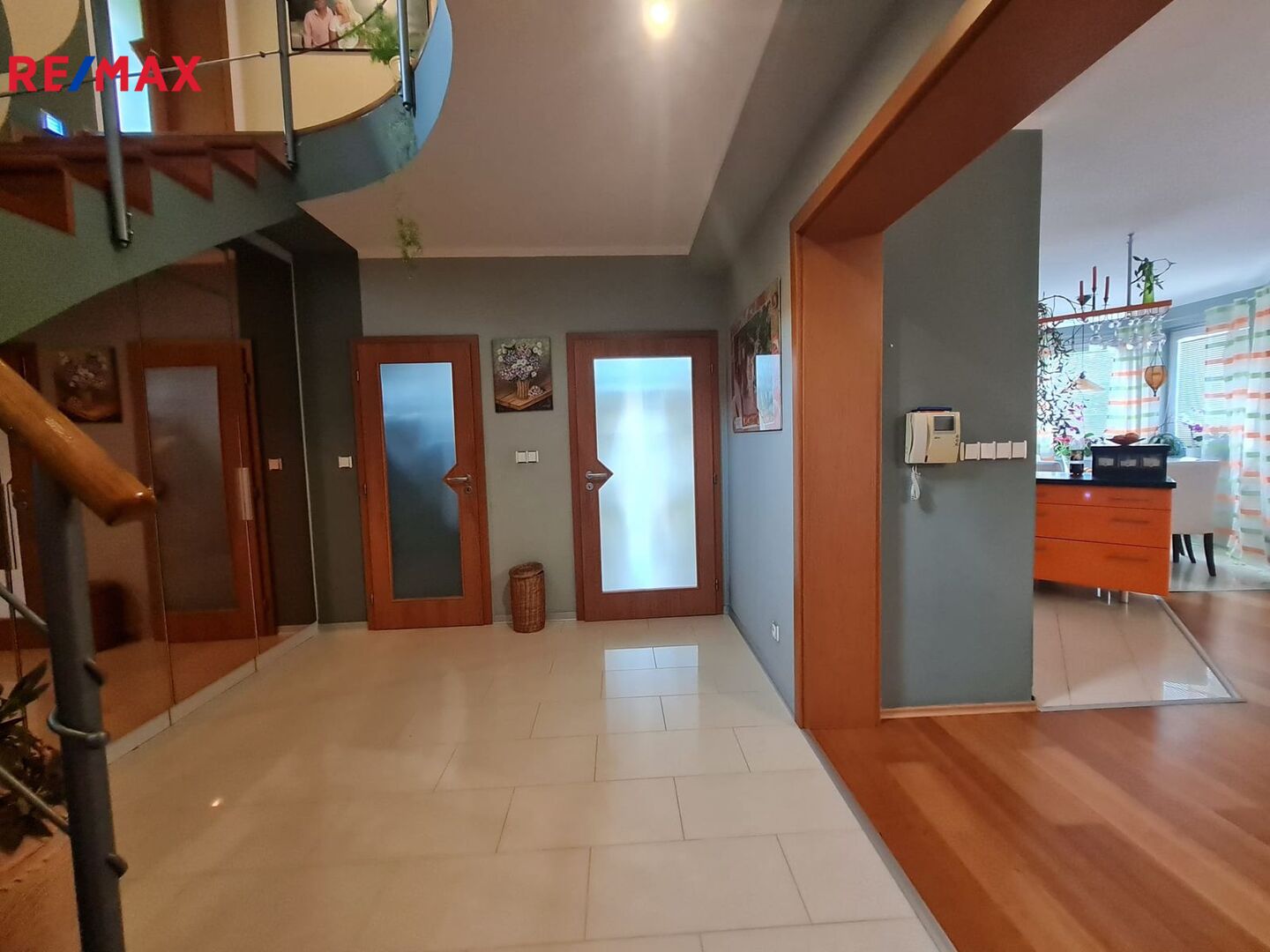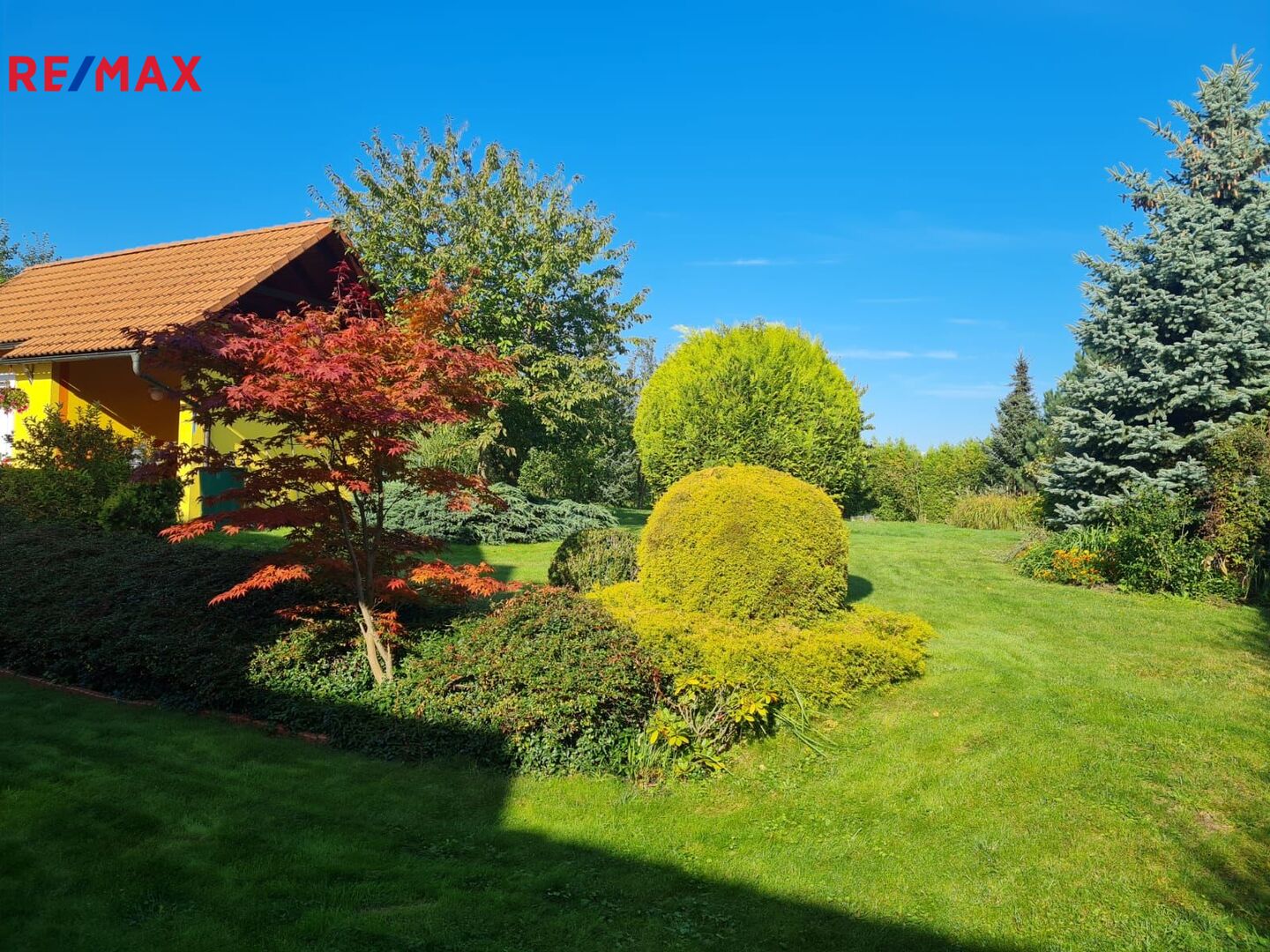 V přízemí se nachází předsíň, prostorná chodba se vstupem do obývacího pokoje s kuchyní a jídelním koutem, dále do pracovny, koupelny s WC a sprchovým koutem. Z obývacího pokoje je možné vystoupit na terasu s posezením. Dřevěným schodištěm se dostaneme do patra kde najdeme velmi hezkou podkrovní ložnici a pokoj, se společným balkónem. Další pokoj je bez balkónu. Pohodlí obývaného patra zajišťuje druhá koupelna s vanou a WC. Přízemí je vytápěno podlahovým topením prostřednictvím plynového kotle. V patře elektrické podlahové vytápění pouze v koupelně. Dalším zdrojem vytápění je krb, umístěn v obývacím pokoji, s rozvody do všech místností. Dům je napojen na obecní vodu a kanalizaci. Garáž s elektrickými vraty a kryté stání vedle domu, umožňuje parkování dvou aut. V přední části zahrady je umístěn zahradní domek s místností na zahradní nářadí a posezením, který umožňuje pohled do upravené zahrady. Prostor před domem je esteticky upraven vysazenými keři a rostlinami a udržovaným trávníkem. Zámková dlažba zpevňuje všechny příjezdové a pochozí plochy. Ráz domu dotváří vkusné oplocení s elektrickou branou.